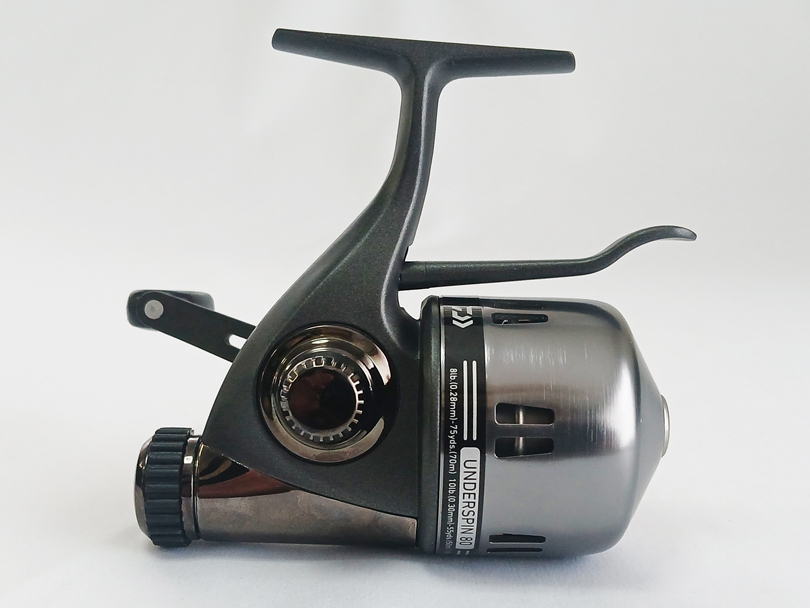 US-Daiwaの北米向けアンダースピンリールの新モデル、アンダースピン80です。型番はUS80-CPです。 今回発売された40・80・120の3兄弟で真ん中のサイズのモデルです。 スピニングロッドに装着するタイプで、スピニングリールと同様のポジションで使用します。 前モデルとの変更点はベアリングが2個増えて3ベアリングになりました。またダブルハンドルを採用しています。ラインキャパシティはUSA-8Lbs(0.28mm-約3号)が75yds(約70m)でギア比は4.3:1、ハンドル1回転当たりの巻き上げ量は21.8インチ(約55cm)です。 ボディ高は104mm、ボディ長さは109mm(トリガー部分除く) 、重さは296g(ライン含む)です。 チタン製シングルピックアップピンを採用しています。 ハンドルは左右共用です。 並行輸入品ですので国内保証書は付きません。 包装はブリスターパックです。| ご購入方法がかんたんになりました |