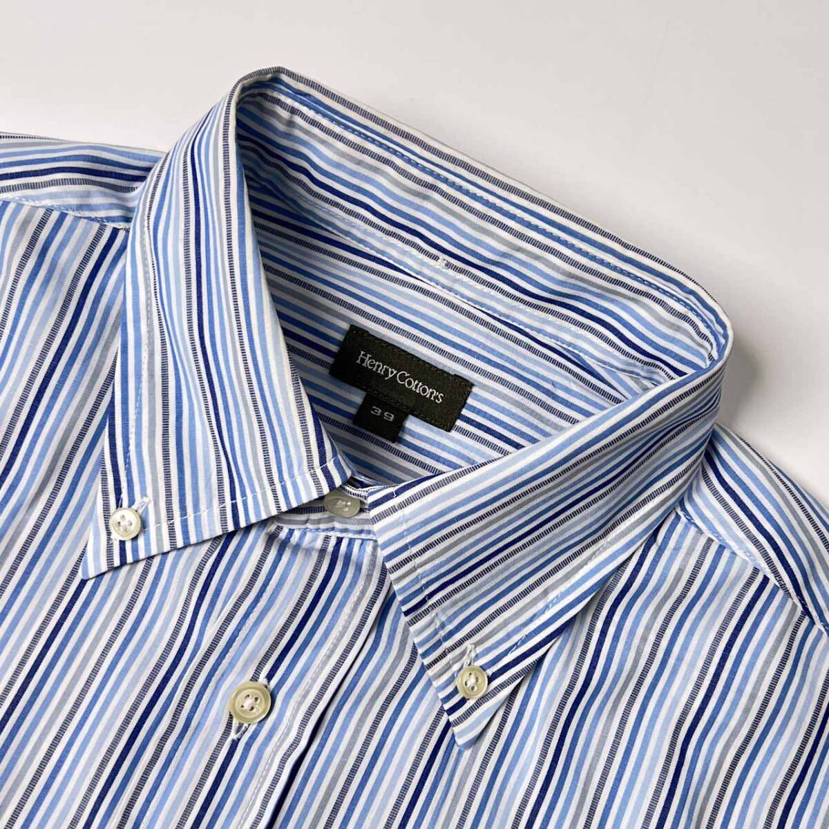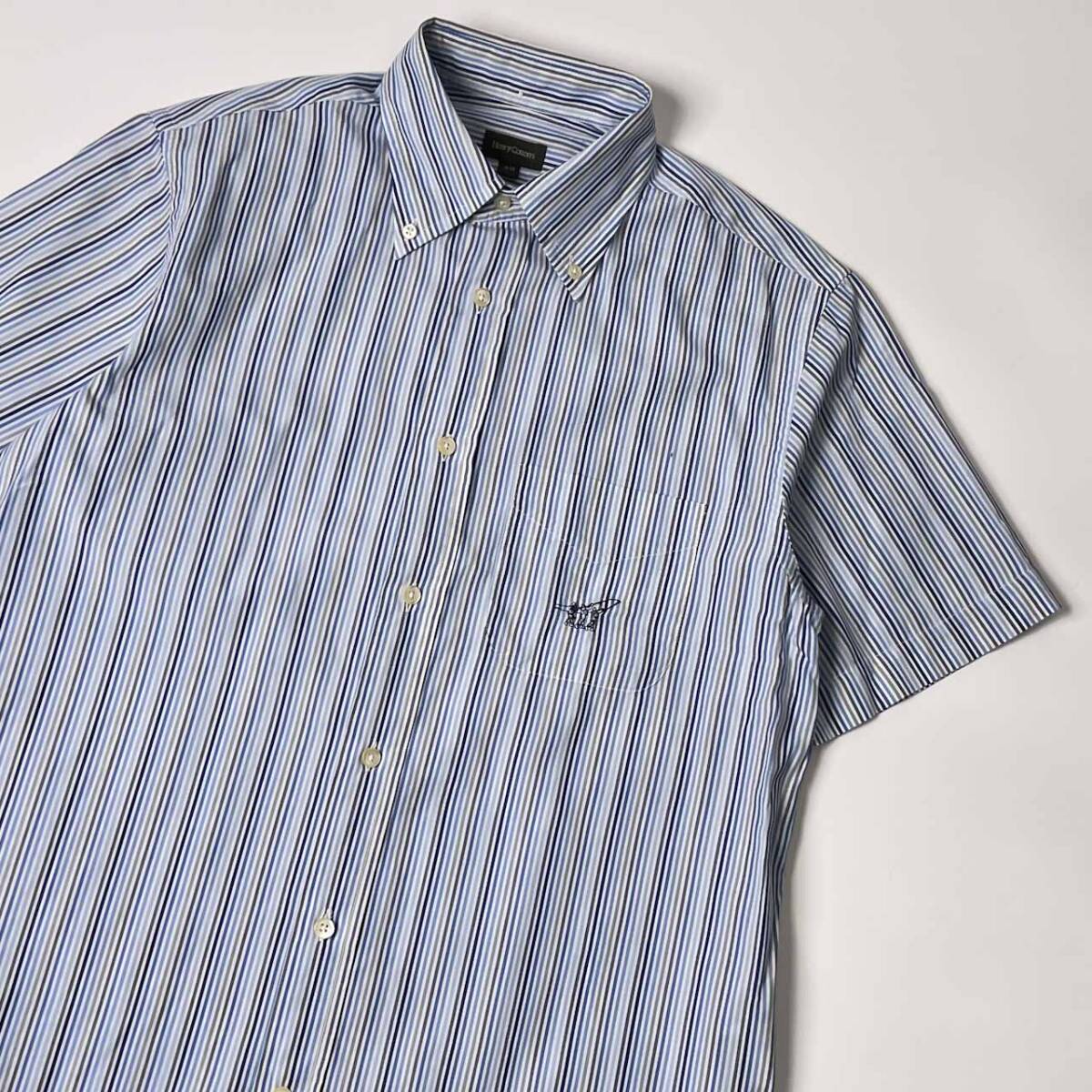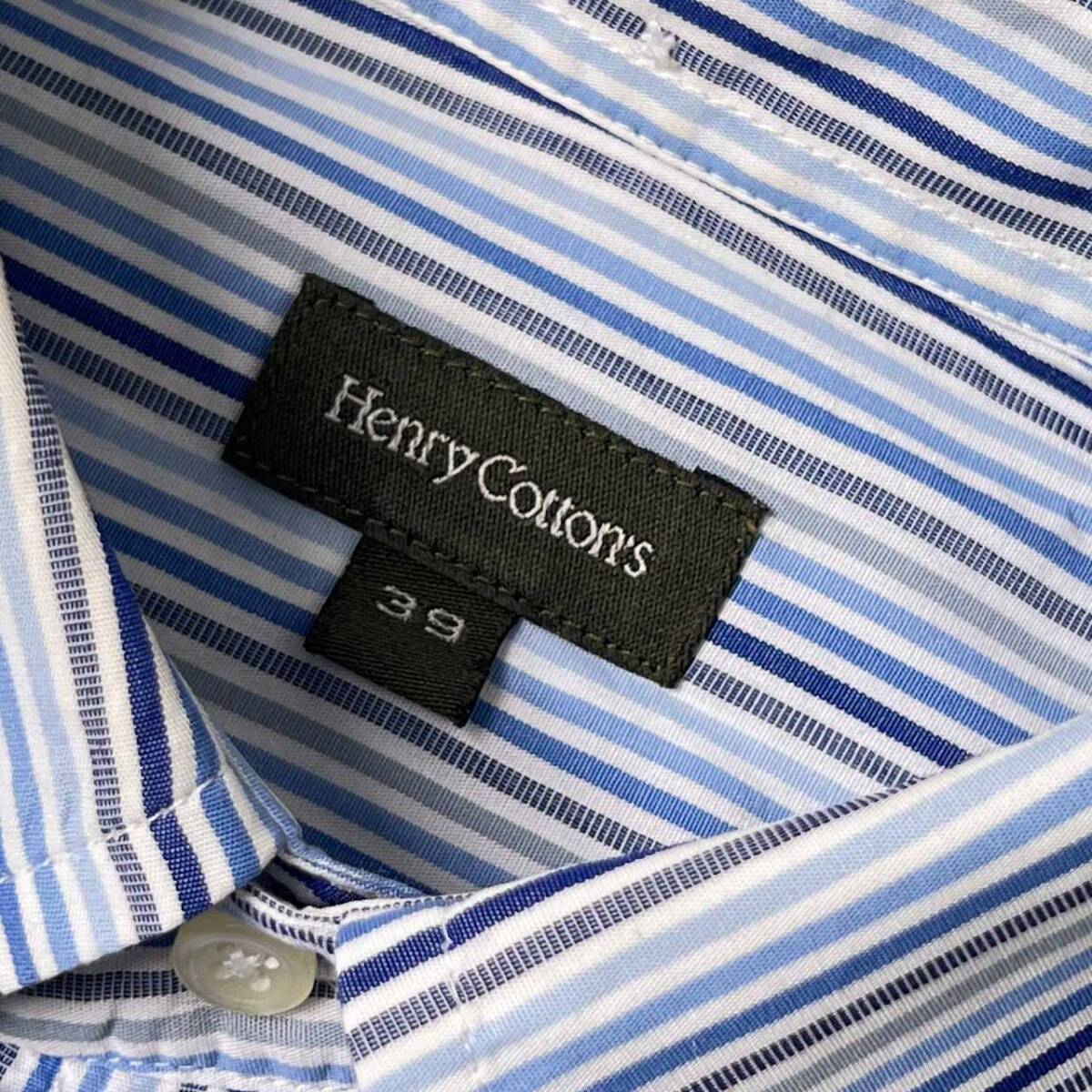 | 商品名 | Henry Cotton's ヘンリーコットンズ ストライプ BD ボタンダウン 半袖シャツ 39/ブルー系 メンズ |