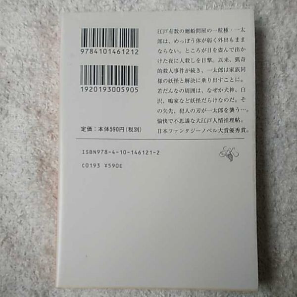 江戸有数の薬種問屋の一粒種・一太郎は、めっぽう体が弱く外出もままならない。ところが目を盗んで出かけた夜に人殺しを目撃。以来、猟奇的殺人事件が続き、一太郎は家族同様の妖怪と解決に乗り出すことに。若だんなの周囲は、なぜか犬神、白沢、鳴家など妖怪だらけなのだ。その矢先、犯人の刃が一太郎を襲う…。愉快で不思議な大江戸人情推理帖。日本ファンタジーノベル大賞優秀賞。