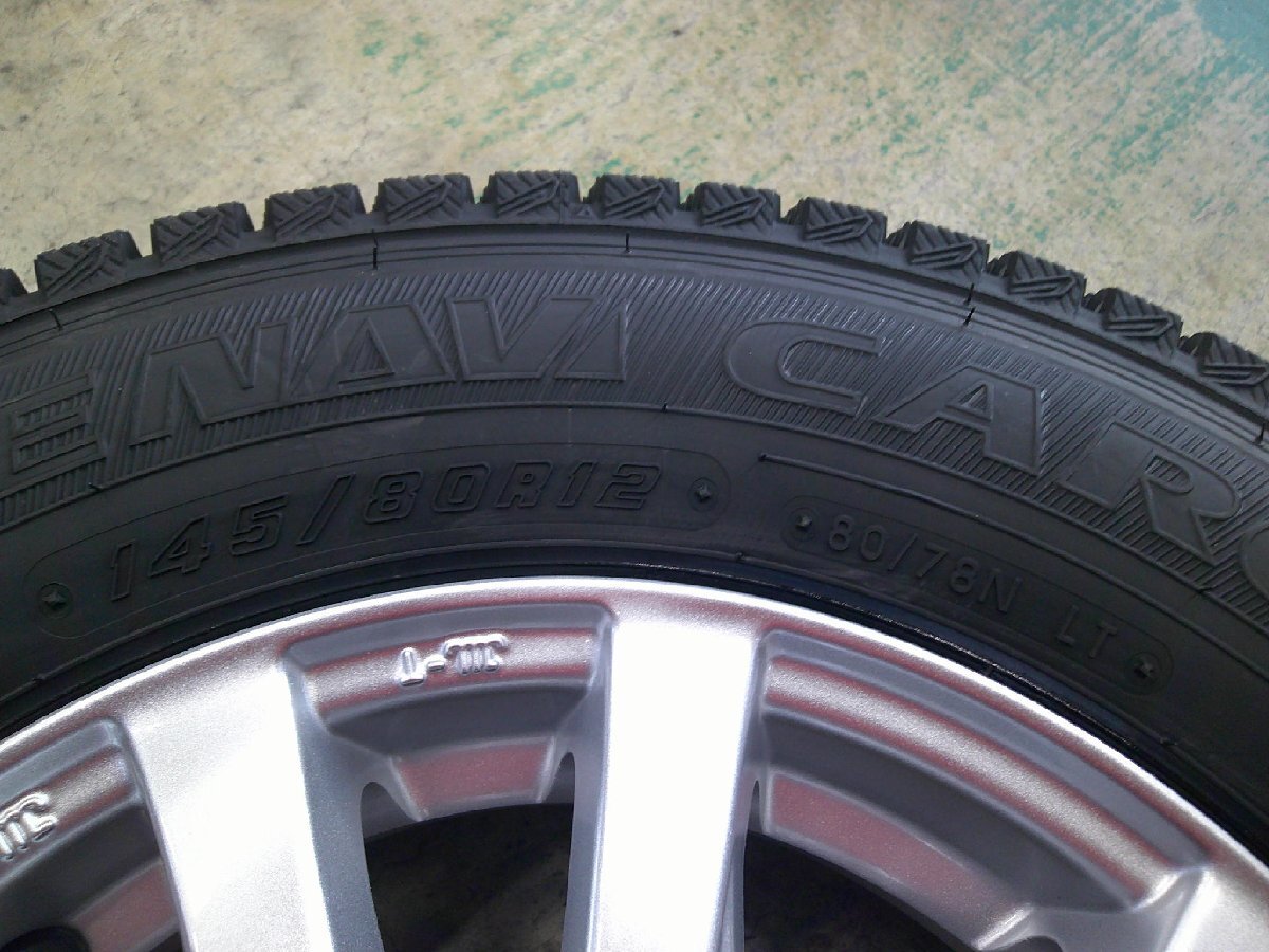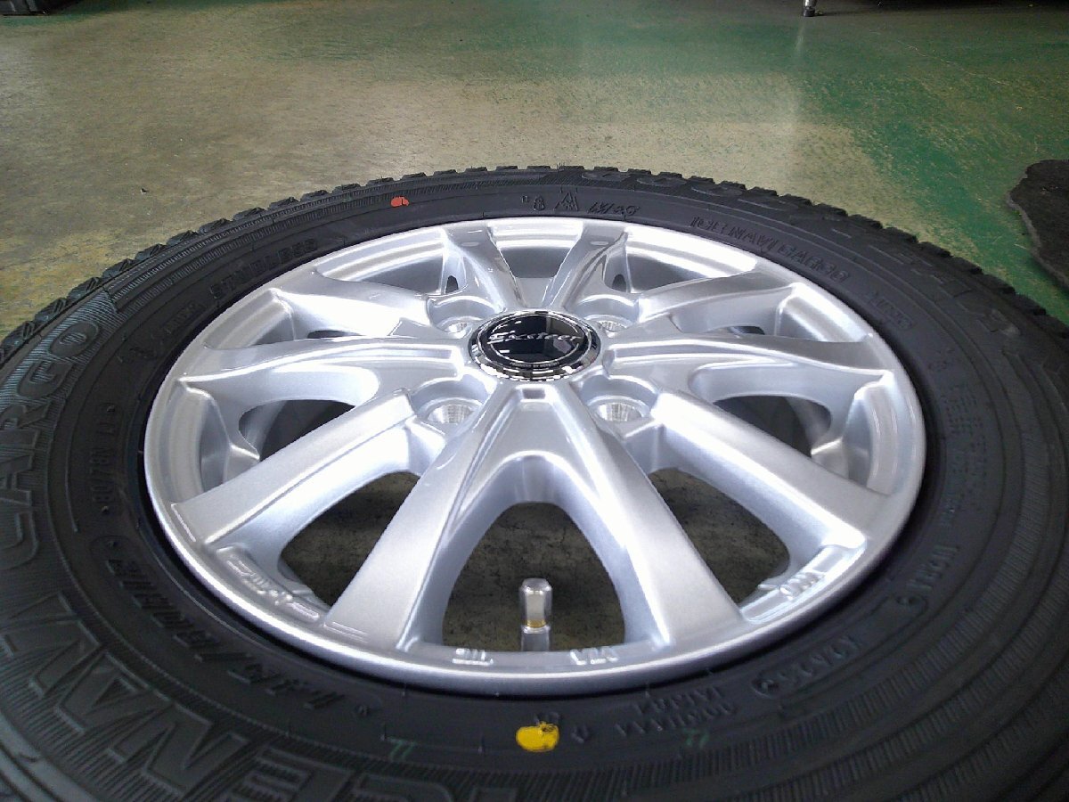 | ☆ホイール ホットスタッフ エクスターAG2 ☆サイズ 4.0J × 12インチ インセット43 ☆PCD100 4穴 カラー シルバー ☆状態 新品 ☆タイヤ グッドイヤー アイスナビカーゴ ☆サイズ 145/80R12 80/78N LT 状態 新品 2025年製造 ☆参考適合車種 軽トラ・軽バン ※適合車種は車両状態や年式により異なります。 ※車種によっては純正ナットが使用できません。 ※写真では組まれていない、もしくは違うタイヤが組まれている場合がございますが、ご注文後に変更いたします。 気になる方はお気軽にお問い合せ下さい。 ★通信販売限定でバランス調整サービスです。 ※運送中、まれにウェイトが剥がれてしまう場合がございます。 その際はお客様負担にて再調整をお願いしております。 ※店頭販売の場合、別途バランス調整代を頂いております。 ★汎用ナットやロックナット、スペーサー等も別途販売・同梱可能です。 ◆マッチングなどお気軽にお問い合わせ下さい。 ビックフット川口店ホームページ |