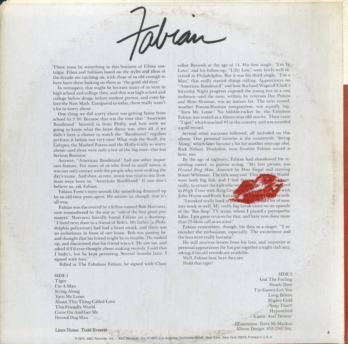 A00500410/LP/ファビアン(FABIAN)「16 Greatest Hits (1973年・ABCX-806)」 [浏览原始页面]