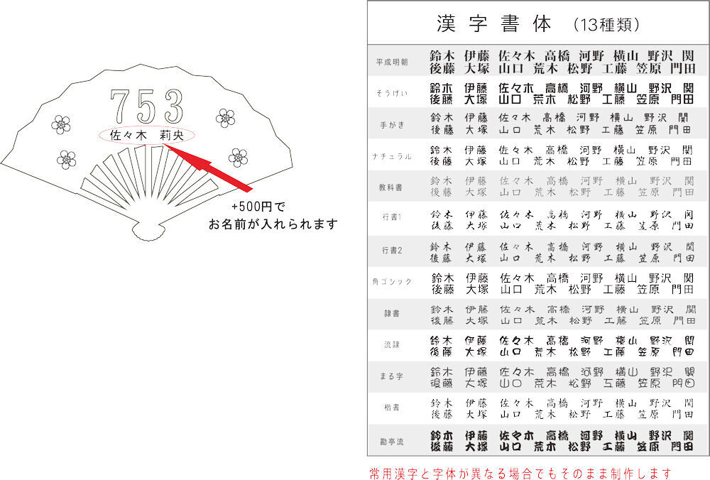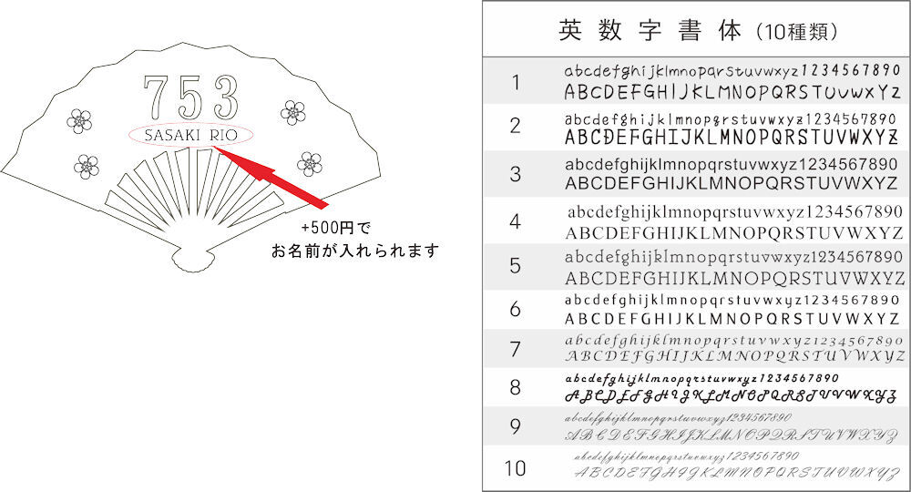 オプションでお名前をお入れ出来ます。(+500円)