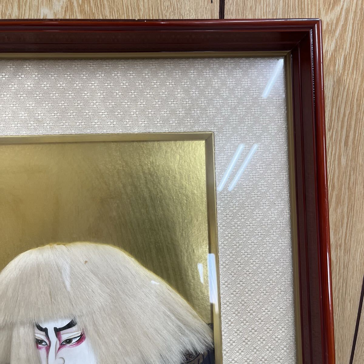 R ☆真作☆ 作者不明 額装 押絵 歌舞伎 獅子頭 白頭 刺繍画 文化刺繍 インテリア アンティーク ホビー コレクション 簡易清掃済