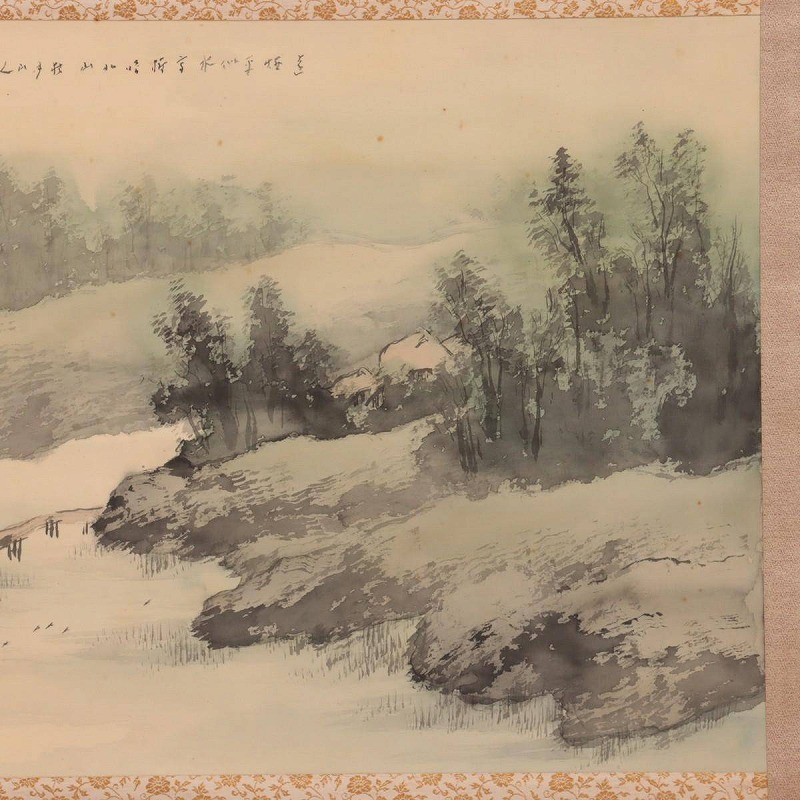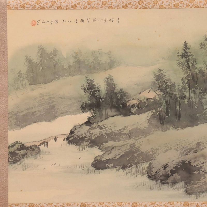 | 【真作】松林桂月 掛軸 絹本 肉筆 彩色「淡彩山水」 落款 印有 共箱(二重箱) 野口幽谷師事 南画家 明治時代 日本画 kl17-1154[OTO] | |
