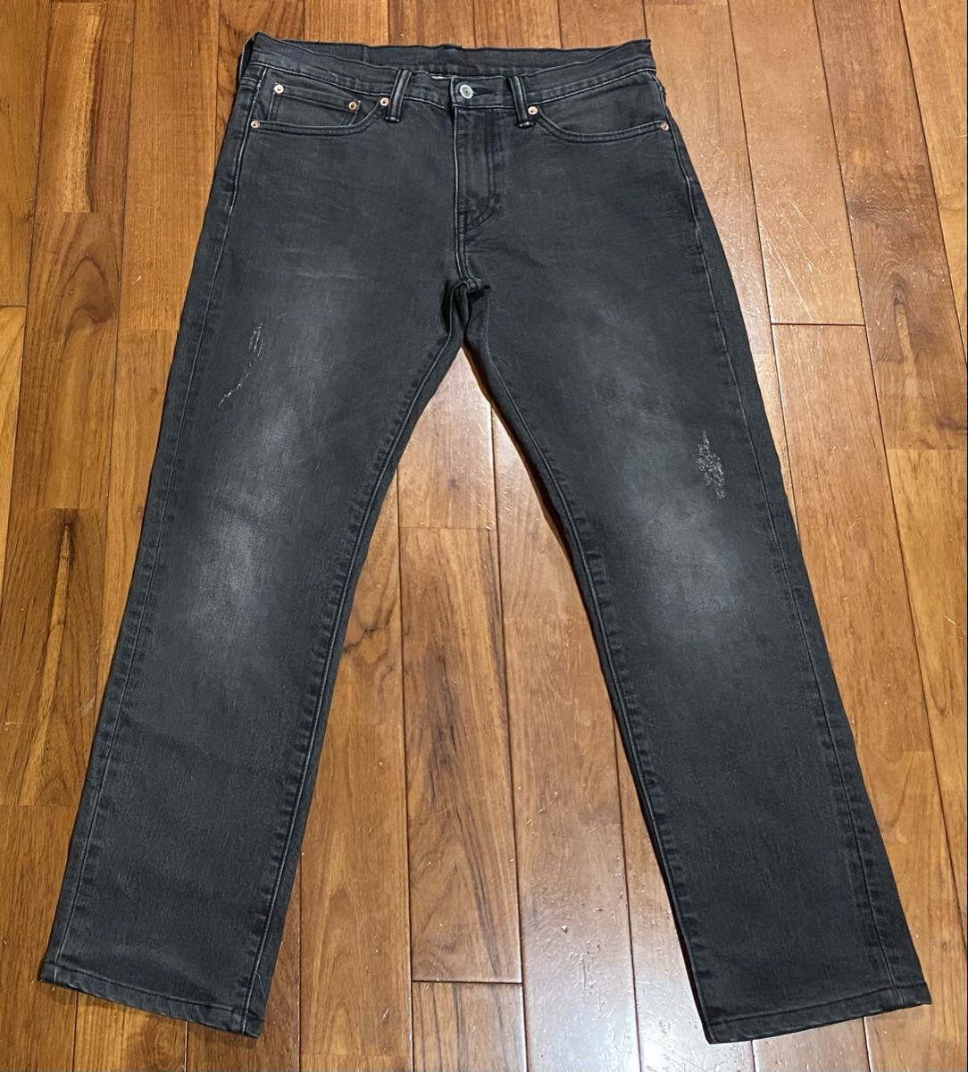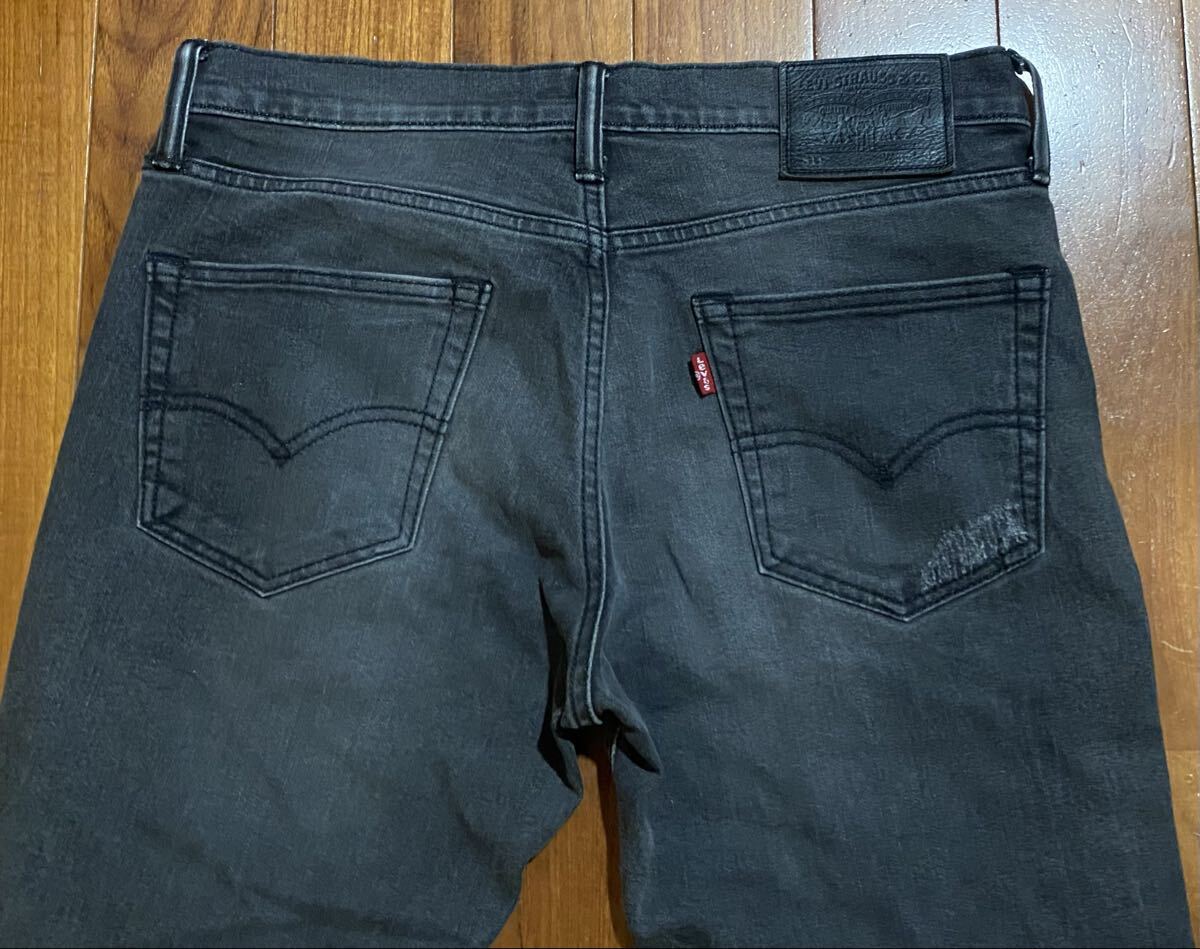 リーバイスのストレッチスリムテーパードデニム(ジーンズ)、04511-1112です。色はグレー地にダメージ加工です。USEDで裾直ししておりますが状態は良いです(10段階中8程度)。生地はストレッチ入りで綿74%、ポリエステル25%、ポリウレタン1%です。牛革パッチ、ジッパーフライです。正規品です(中国製)。サイズはW32でウエストは重ねずに平置きで約85cm、ヒップ約104cm、股上約25cm、股下約72cm、股下15cmのふともも部分約51cm、裾まわり約37cm、重量約560gです。発送はゆうパケットポストになります。
