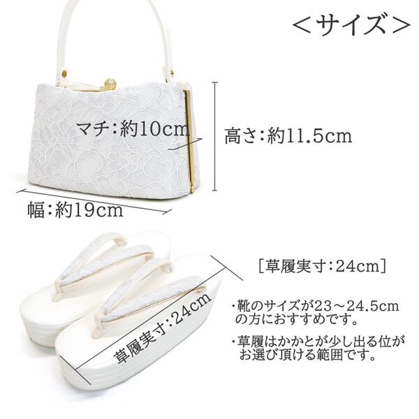 真っ白なレース帯地を使用したモダンな草履バッグのセットです。