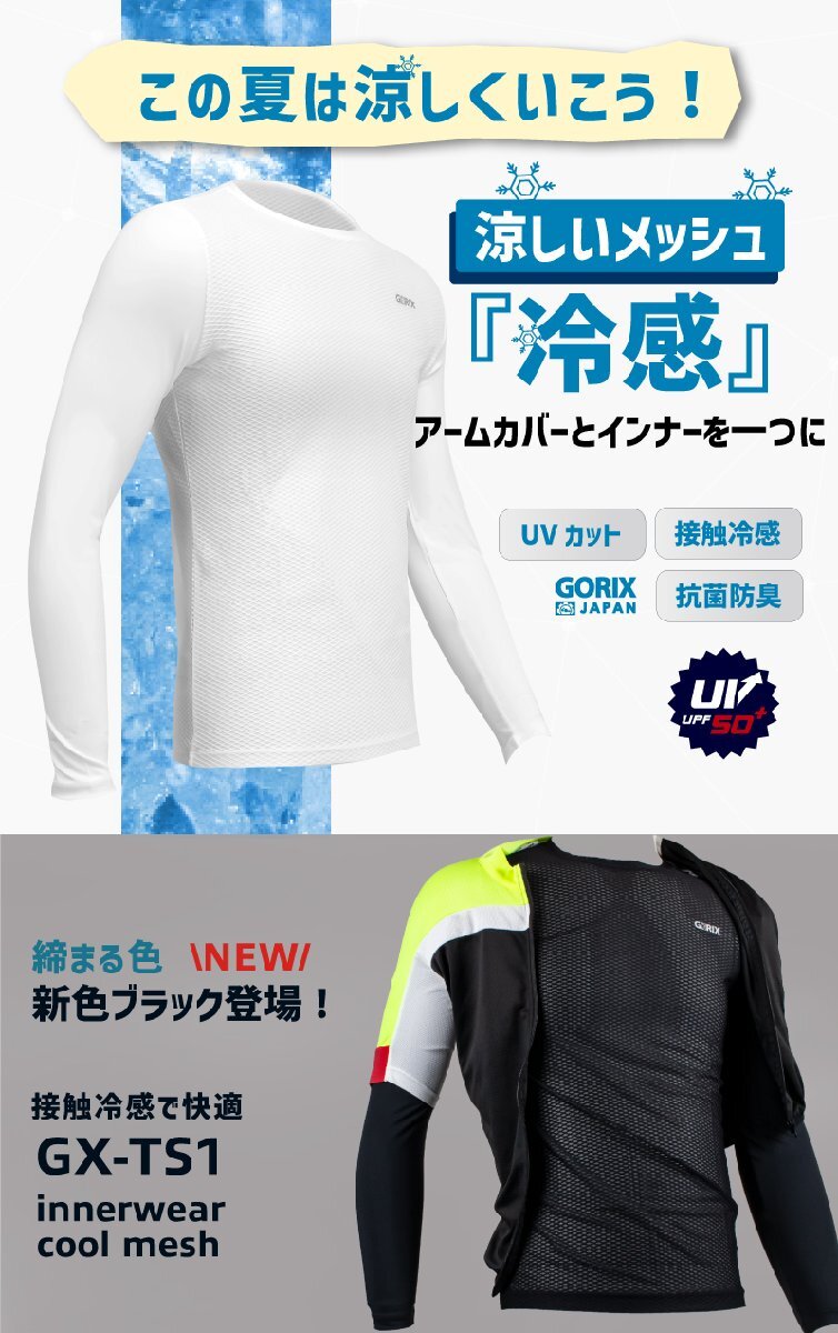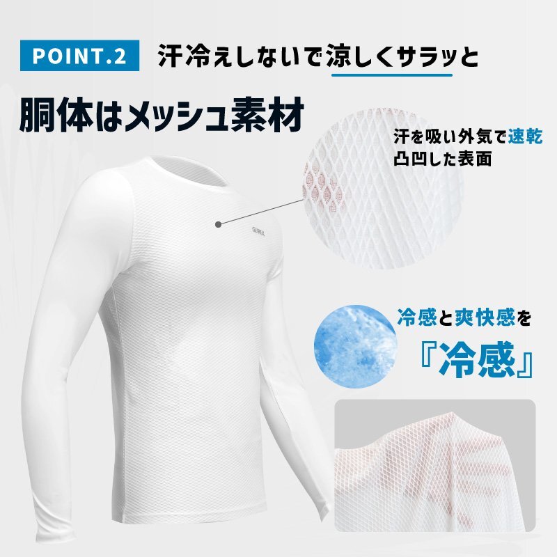 アームカバーとシャツが一つになった夏用インナーウェア 接触冷感で涼しく胴体部分はメッシュ素材でサラッと着れる! 夏用インナーとしてお使い頂ける長袖のUVインナーシャツ。 清涼感、通気性、伸縮性があり夏の汗を素早く吸水速乾する機能的な素材です。 ・接触冷感、抗菌防臭、UV効果で夏の汗対策に! 胴体部分と腕周りで場所に合わせた冷感素材を配置しました。 ・腕周りは日焼け防止のUVカットと通気性清涼感生地を採用。 ・胴体周りは透け感のある凹凸材質で汗を素早く吸水。 風を効率よく取り込み、汗を素早く速乾してクールダウン。 肌に触れる部分を少なくし、ベタ付かずにサラッと快適な着心地が続きます。 より高い通気性とCoolな清涼感生地で製作。 ・程よい伸縮性により幅広い体型に無理なくフィット。身体に沿って汗を吸収。 ・長袖部分は肩からズレないアームカバーとしてそのまま使用して 半袖ジャケット等と合わせての着用がオススメです。 ロードバイクなどでのサイクルウェアとして、ランニングやウォーキング、ゴルフ、テニス、釣りやツーリングや キャンプなどのアウトドアシーンや屋外作業にも最適です。 素材胴体90%polyester, 10%spandex(一部サイズ)92%nylon, 8% spandex 商品は入荷によりキズがある場合があります。 傷や細かい汚れが気になる方や神経質な方は入札をお控え下さい。 入荷時期により予告無く一部仕様変更する場合が有ります。 カラーはディスプレイ種類環境等により実物と異なって見える場合がございます。 |