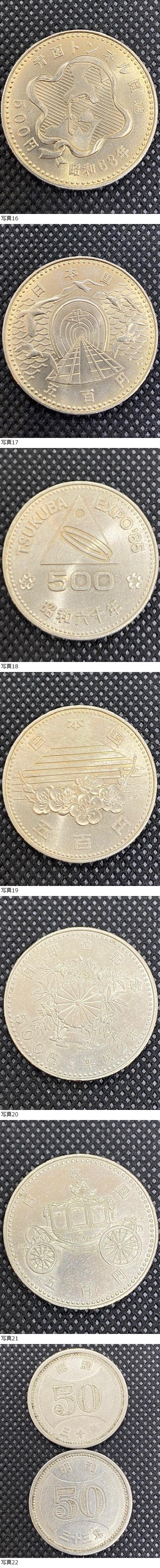 | この度はこちらの商品をご覧いただきありがとうございます。 ・いたずら入札はご遠慮ください。 ・落札されましたら5日以内に入金をお願い致します。 入金の確認が取れない場合は落札者都合による キャンセルを行います。 ・不明な点がございましたらお気軽にご質問をお願い致します。 ・商品によっては長期保管品も出品しておりますので、 ジャンク品の可能性もございます。 画像をよく確認していただきご理解いただける方のみ ご入札をお願い致します。 ・落札後のキャンセルは行っておりませんので、説明文や画像を 良く確認していただきご入札をお願い致します。 ・札幌五輪 昭和47年 100円 (1枚) 100円 ・長野五輪 平成9年 500円 (3枚) 1500円 ・EXPO75 沖縄 昭和50年 100円 (4枚) 400円 ・EXPO85 つくば 昭和60年 500円 (1枚) 500円 ・第12回アジア競技大会記念 500円 白銅貨幣 平成6年 1994年 (走る) (1枚) 500円 ・天皇陛下御在位 50年記念 硬貨 昭和51年 100円 (5枚) 500円 ・天皇陛下御在位 60年記念 硬貨 昭和61年 500円 (1枚) 500円 ・天皇陛下御即位記念硬貨 平成2年 500円 (1枚) 500円 ・沖縄 復帰 20年 記念 平成4年 500円 (4枚) 2000円 ・青函トンネル開通記念 硬貨 昭和63年 500円 (1枚) 500円 ・内閣制度百年記念硬貨 昭和60年 500円 (5枚) 2500円 ・ ・昭和 30年 33年 穴無し 50円 (2枚) 100円 ・額面9600円 | |