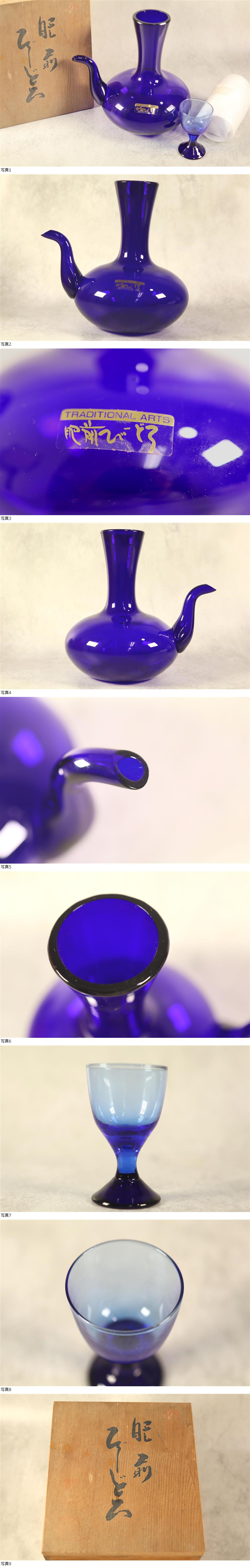 肥前びーどろ ガラス 酒器セット 青色 かんびん 肥前 燗瓶 ぐい呑み お猪口 ブルー 共箱 食器 硝子 の出品です。 ★サイズ感:幅約15cm 奥行き約12cm 高さ約15cm ★商品状態:長期保管品になります。ぐい呑みの一つは未開封になります。詳しい状態は写真にてご確認下さい。 ★配送方法 :ゆうパック60サイズにて発送いたします。 ★完品をお求めの方は入札をご遠慮ください。 ★入金確認後、3日以内に発送いたします。 ★写真には写しきれない小キズやスレ等あるものとお考え下さい。 ★ご使用のモニター設定により色味が異なる場合があります。 ★ノークレーム・ノーリターンでお願いします。 ★ご入札後3日以内に決済を完了出来る方のみご入札下さい。
