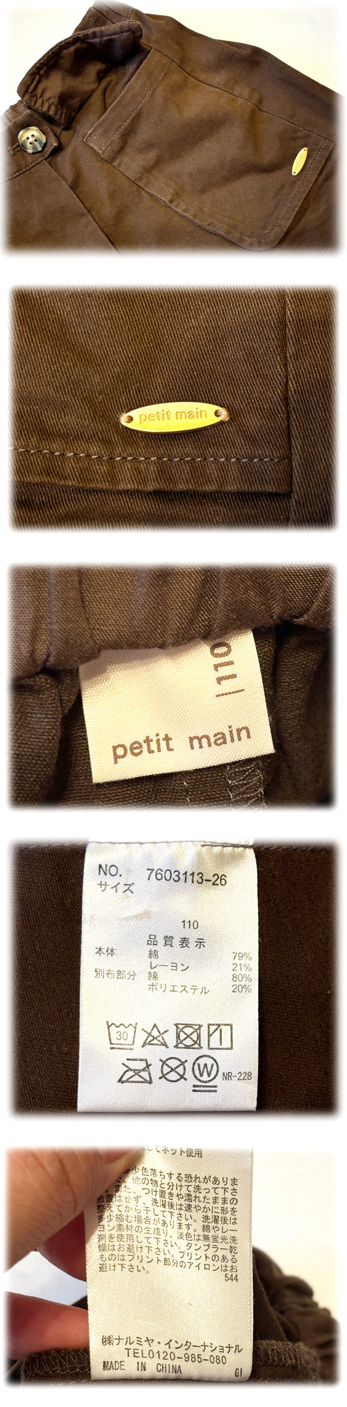 | petit main プティマイン フラップポケット付 ショートパンツ キッズ スカパン 茶 美品 激安 人気 送料無料 110 | |