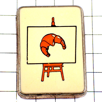 | "ピンバッジ・クロワッサンのデッサン絵画パン一個イーゼルとキャンバス画"の商品説明 | |