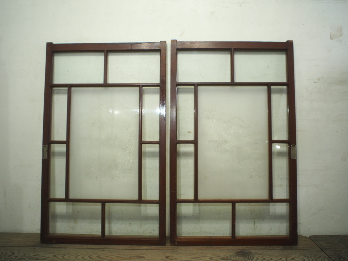 商品情報 | ■商品詳細■ アンティークの古い木枠ガラス戸、2枚セットです。 長年使い込まれた味わいのある品です。 ガラスは、サンドブラスト加工の透明ガラスと 気泡入りのゆらゆらの透明ガラスを使用しています。 一般のご家庭はもちろん、レトロな店舗什器にもお勧めです。 経年の傷や欠け、染みや塗装の剥がれ、 ガラスに画像の様なチップや線キズ等がありますが、使用には問題ありません。 ガラスにヒビや割れはありません。 古い物とご理解いただければ幸いです。 ご不明な点などありましたら、質問欄にてお願いします。 ■サイズ■ 全体(最大値) (H 109cm×W 66,5cm×D 3cm)×2枚 竪框 3,5cm 多少の誤差はご了承下さい。 |