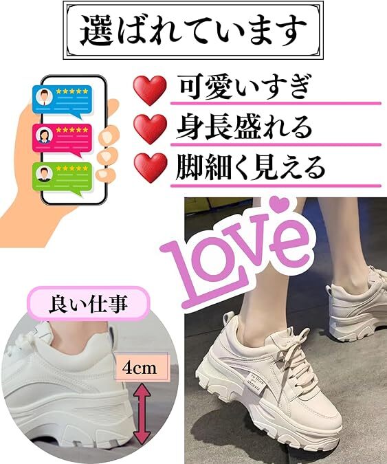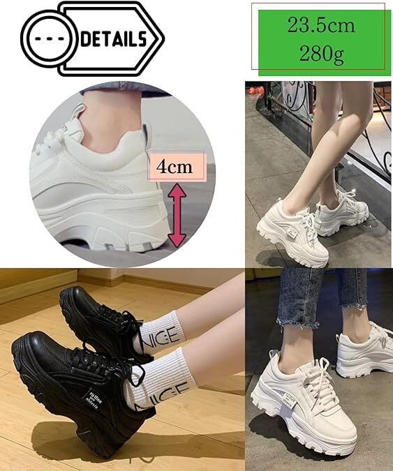 | motayu18 スニーカー レディース オフホワイト 23.5㎝ 靴 シューズ 厚底 軽量 通学 ダンス カワイさアップデート | |