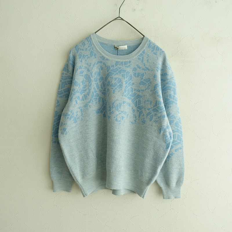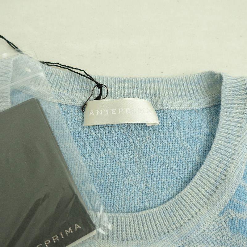| ANTEPRIMAのDAMASCO柄ウールカシミヤニットセーターです。カラーは水色のバイカラー使いです。細番手のウール・カシミヤ混紡糸で編みたてられた、薄すぎず程よい厚みのダブルジャカードニットで仕立てられています。クルーネックのシンプルなデザインのアイテムです。定価(メーカー希望小売価格)59,400円の商品です。 |