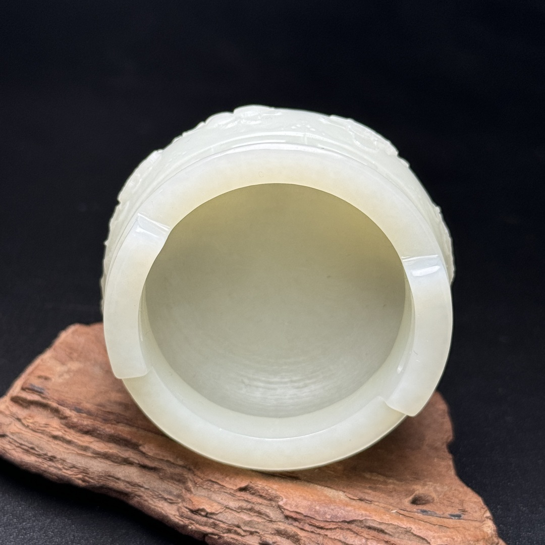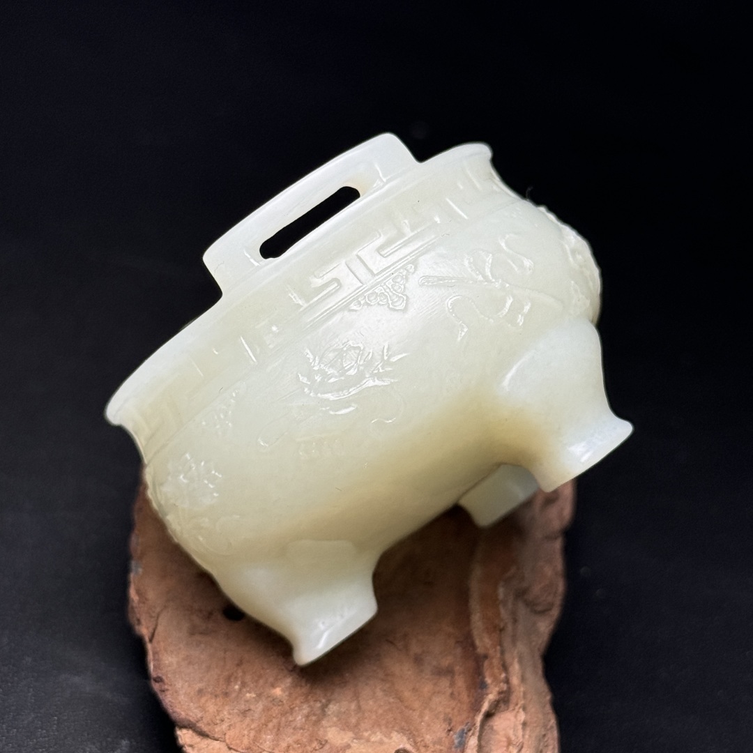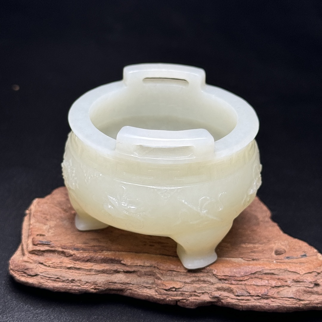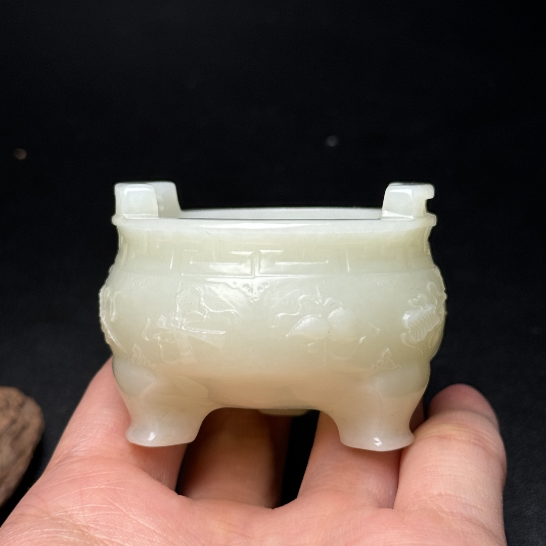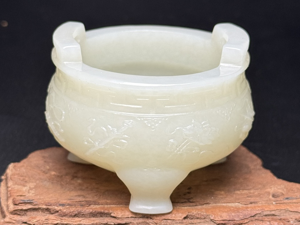 ◆御泓軒◆『清時代 和田玉 八仙法器紋三足双耳香炉』極細工・古賞物・中国古玩・中国古美術