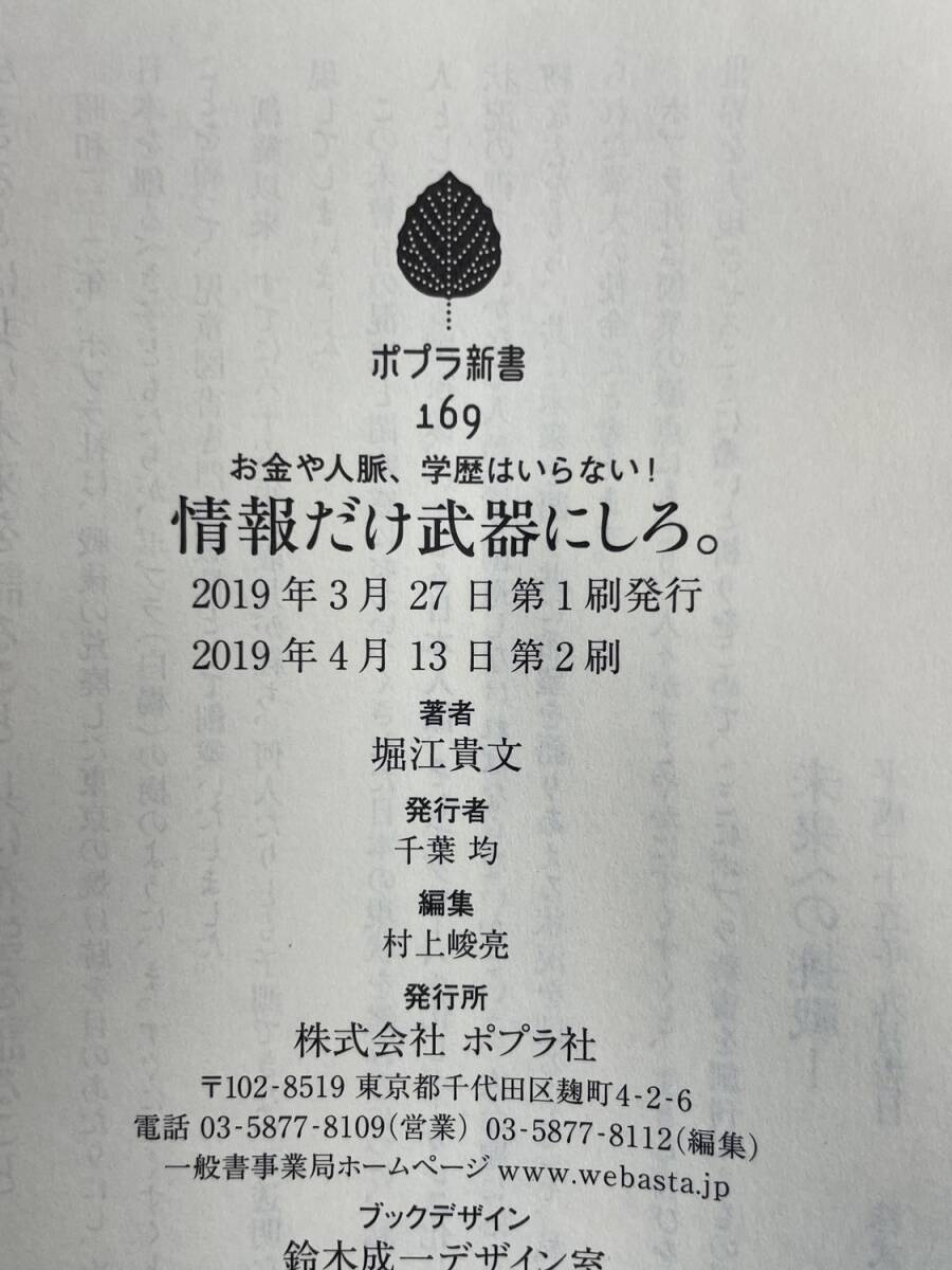 情報だけ武器にしろ。 お金や人脈、学歴はいらない! ポプラ新書堀江 貴文 平成31年