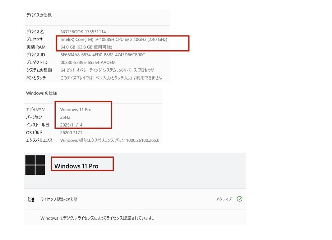 Windows 11 Pro 64bit 新規OS 2025/11/14 インストール |