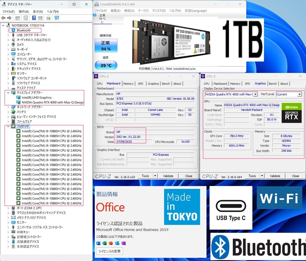 | ストレージ | NVMe SSD : 1 TB |