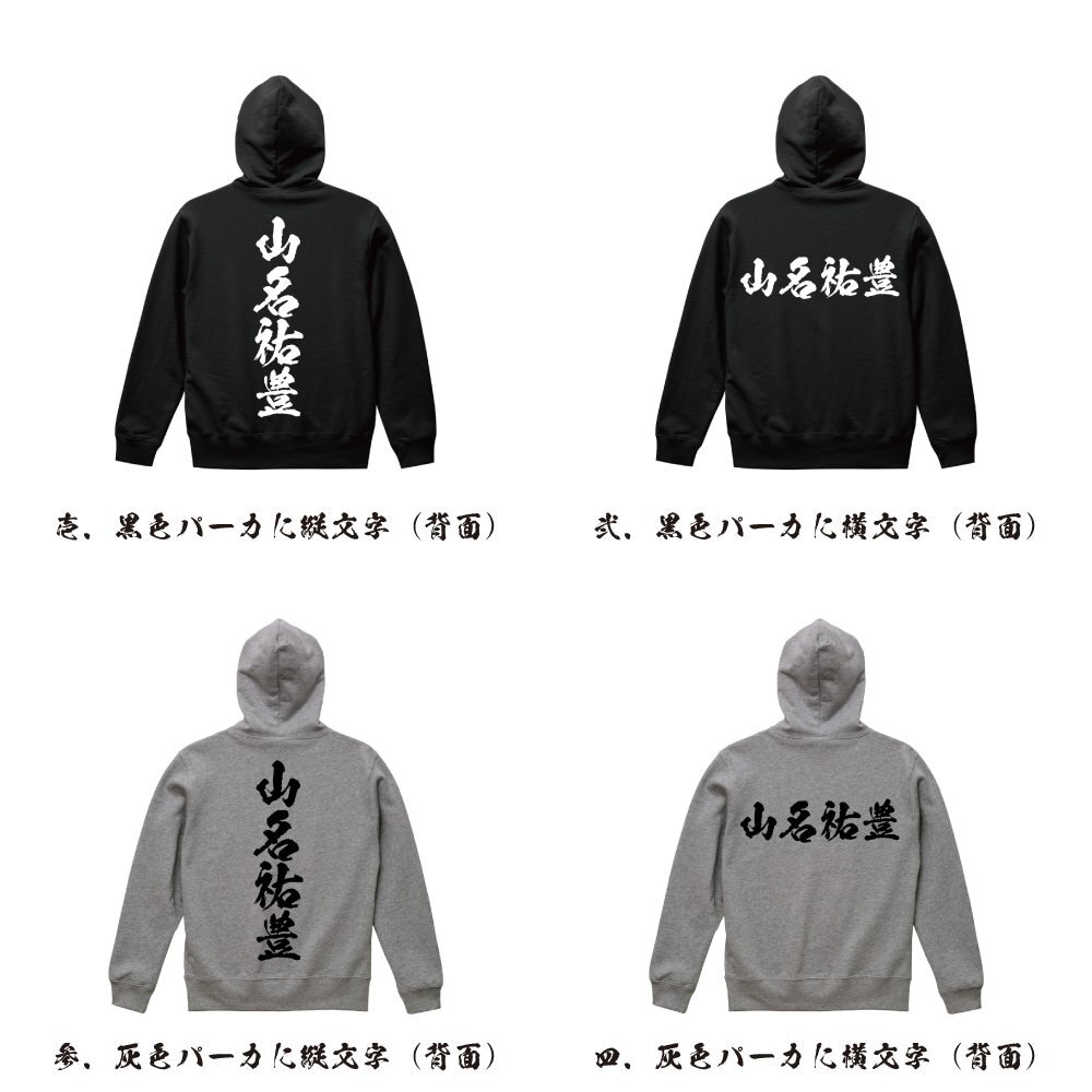 | 商品名 | 書道家が書く プリント オリジナル フルジップ パーカ | 他連絡先 | 1.TEL ⇒ 0120-931-578 【専門スタッフ応対】 2.E-MAIL ⇒ workpro@cronos.ocn.ne.jp 3.FAX ⇒ 059-253-3578 |
