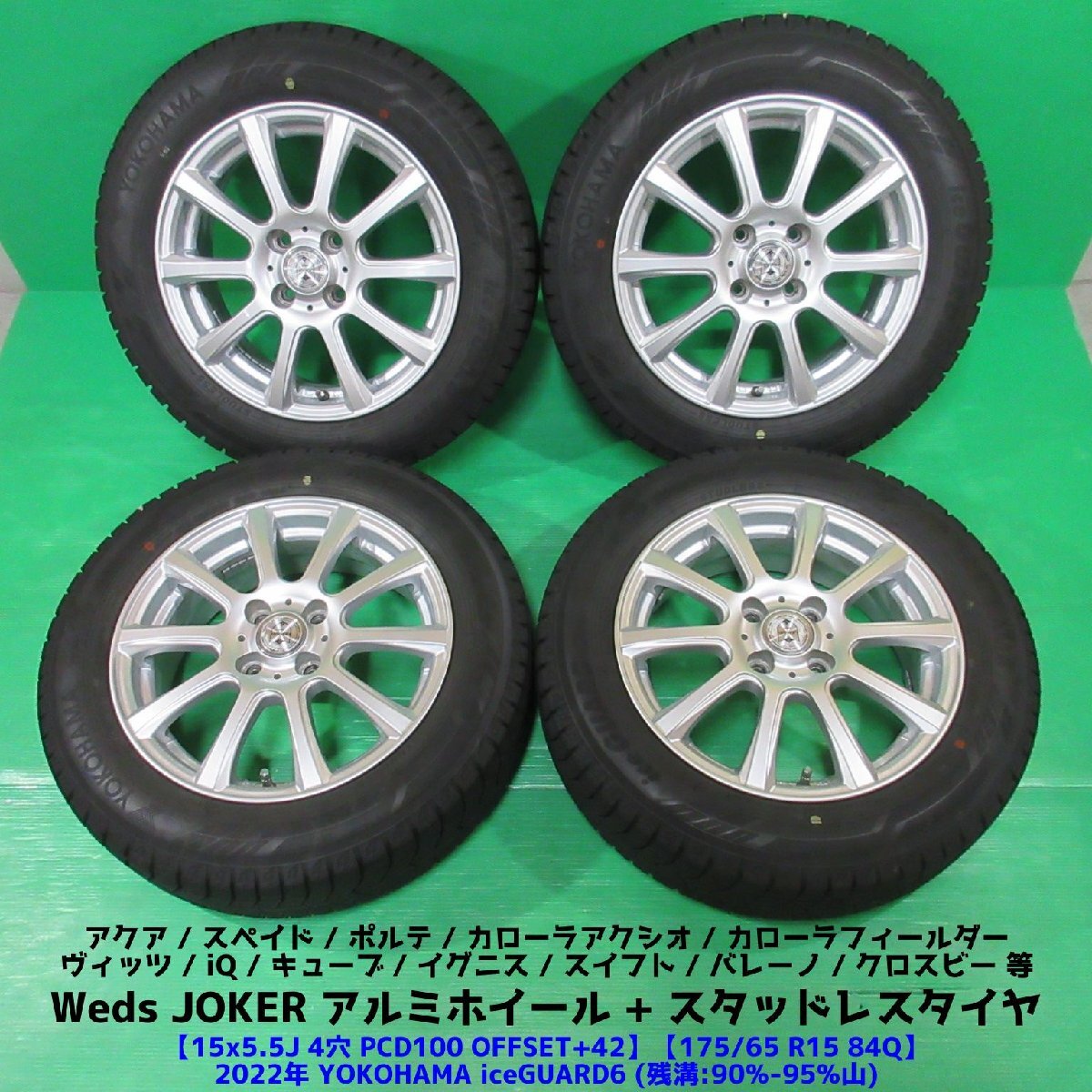 ◆商品紹介◆ 【4本セット】です。 ・適合車種(【参考程度】です。マッチングについては必ず入札者様自身の責任で御調べください。) 前装着車種:トヨタ アクア (年式グレード不明) (トヨタ) iQ アクア カローラアクシオ カローラフィールダー スペイド ポルテ ヴィッツ (ホンダ) フィット インサイト シャトル フィットシャトル グレイス (日産) キューブ (スズキ) イグニス スイフト バレーノ クロスビー (BMW MINI) ミニ 【ホイール】
