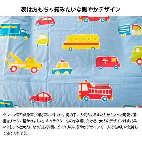 | 内 容 | ■ウエスティ オズボーイII 敷布団カバー ジュニアサイズ(413742) ■サイズ:95×195cm ■組成:綿100% ■カラー:ブルー ■仕様:全開ファスナー ■日本製 表はおもちゃ箱みたいな賑やかデザイン! クレーン車や救急車、消防車にパトカー。 男の子に人気のくるまたちがちょっと可愛く落書きチックに描かれました。 表が賑やかな分、お布団をめくった時にちらりと見える裏地はシンプル無地に。 素材はもちろんお肌にやさしい天然素材の綿100%で吸汗性にも優れています。 YKK社の全開ファスナーで開閉スムーズ、出し入れしやすい。 もちろん、ご家庭の洗濯機で丸洗いOK。 ※パッケージのラベルが異なる場合があります |