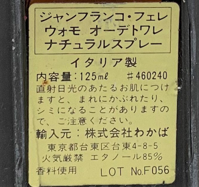 | 商品説明 | ★FERRE★ジャン フランコ フェレ ウォモ★オードトワレ★125ml★(中古品)です。 ※残量は、90%ほどになるかと思われます。 ※残量、コンディション等は画像を参考にして下さい。 |