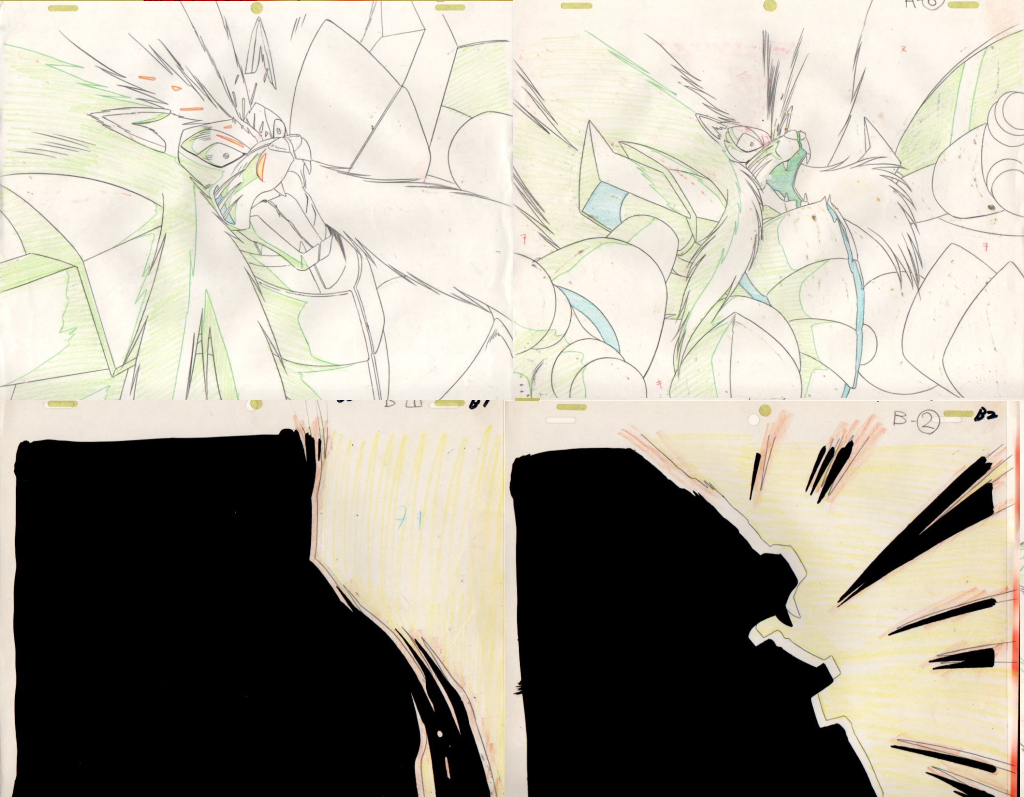☆魔神英雄伝ワタル・セル画連続セット③・野獣魔神ヘルライガー鳳龍剣で断末魔連・サンライズ・大河原邦男・芦田豊雄・プラクション