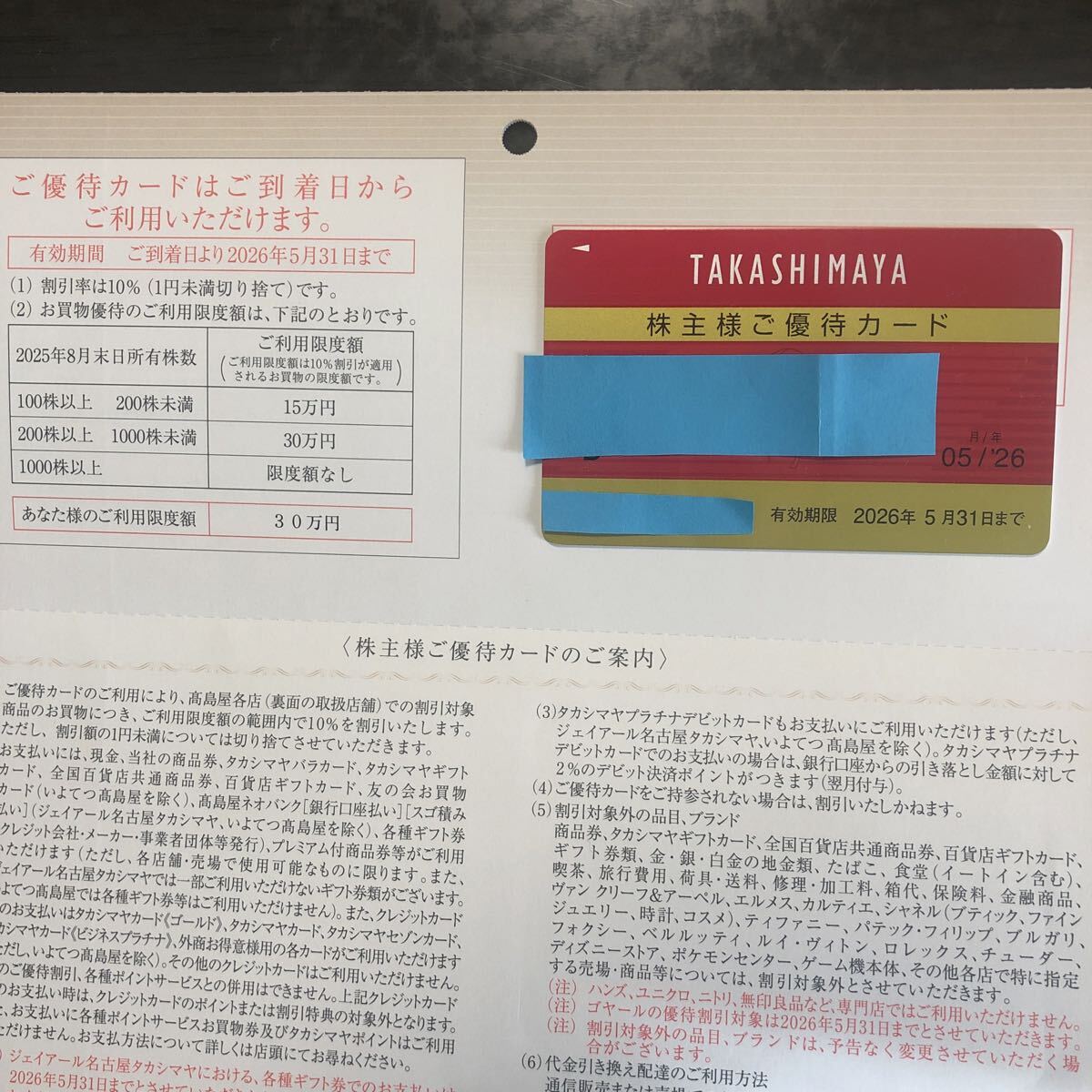 高島屋 株主優待カード 男性名義 利用限度額30万円 2026年5月31日迄| 出价者 | 信用 | 价格 | 时间 |