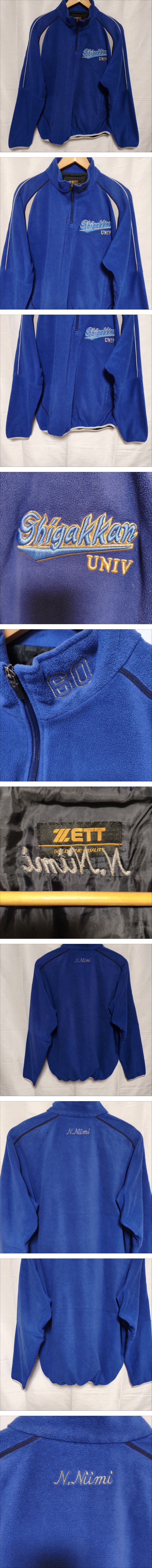 大学野球◆志學館大学 硬式野球部 ZETT製 フリース素材 ハーフジップジャケット L(青)・実使用品◆現状渡し品 H | |||