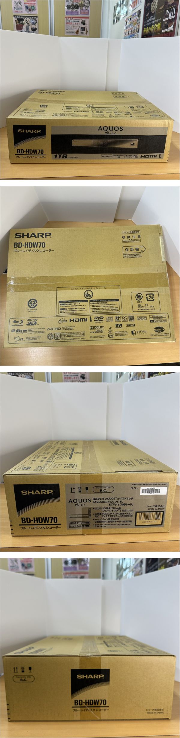 | ☆★☆★☆ご入札前に【ご利用規約】を必ずお読み下さい☆★☆★☆★ 【未使用品】シャープ ダブルチューナー 1TB HDD内蔵ブルーレイディスクレコーダー BD-HDW70【未開封品】 【状態】【未使用品】長期保管品の未開封品です。 長期保管品の為、箱に少々ダメージがあります。 詳しくは、添付写真にてよくご確認いただきご検討ください。 ノークレーム・ノーリターンでのご入札をお願いいたします。 お品物の状態に関する主観や外観の 感じ方には個人差がございますことをご理解いただける方、 また画像でよくご確認の上、ご入札をお願い致します。 画像がすべてとなりますので、よくご覧頂きご納得いただける方のみ入札をお願い致します。 ※ノークレーム、ノーリターンでお願いします。 ★☆★☆★☆ご入札前に【ご利用規約】を必ずお読み下さい☆★☆★☆★☆★ | ||