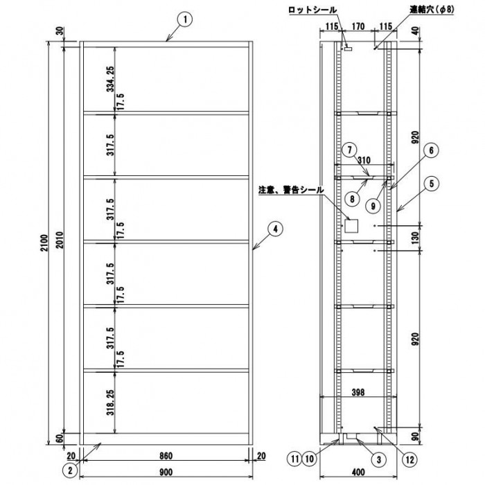 | サイズ | 外寸法:W900×D400×H2100mm、内寸法:約W860×D398×H2010mm 個装サイズ:41×92×212cm |