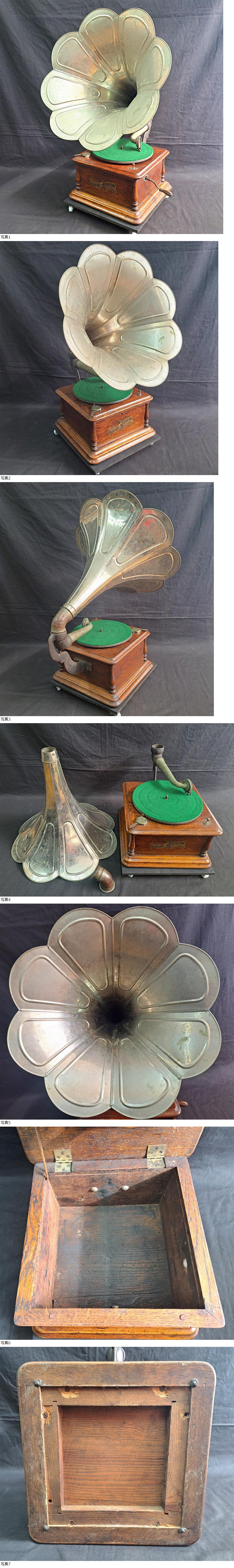 48時間以内に入金できない方、 評価の悪い方、新規の方、 連絡の遅い方、 神経質な方の入札はご遠慮願います。 ご覧の通り古いNIPPONOPHONE ニッポノホン ラッパ型蓄音機 ジャンク現状品です。 数年前に要修理ジャンク現状品を地元の骨董店で購入し修理せず購入時のまま部屋に飾っておりました。付属のハンドルでゼンマイを巻いた所ターンテーブルは回転しますがスピードのコントロールが効かないらしくかなり早く回っておりました。それ以外の確認は出来ておりません。稼働させるのには修理が必要です。状態は傷汚れ、ラッパのメッキクスミ等所々ダメージが御座いますが飾っていて恥ずかしくなるような大きなダメージはありません。詳しくは良く画像をご覧下さい。100年以上前の古いラッパ蓄音機になりますので他にも画像では映らない傷等ある場合がありますが全てを事細かに説明することは出来ませんので細部まで気になされる方やアンティーク品にご理解のない方の御入札はお控え頂けますようお願い致します。ジャンク現状出品ですので如何なるクレームにも対応できません。画像で判断できる方やそれでも構わないと言う方のみ入札願います。見栄えの良い蓄音機ですので昭和レトロな部屋の雰囲気作りやショップのインテリア等に如何でしょうか? ノークレームノーリターンでお願いします。 寸法は約34㎝×約34㎝、ラッパ径約50㎝です。 素人計測ですので参考程度にお考えください。送料は佐川元払いのみ・・・・・・・・・・・・ 2個口合計【北海道】3850円 【北東北】3250円 (青森、岩手、秋田) 【南東北】3250円(山形、宮城、福島) 【関東】 3250円 (茨城、栃木、群馬、埼玉、千葉、東京、神奈川、山梨) 【信越】 3600円(新潟、長野) 【北陸】 3600円(富山、石川、福井) 【中部】 3600円 (静岡、愛知、岐阜、三重) 【近畿】 3900円(滋賀、京都、大阪、兵庫、奈良、和歌山) 【中国】 4250円 (鳥取、岡山、島根、広島、山口) 【四国】 4250円(香川、徳島、愛媛、高知) 【九州】 4250円(福岡、佐賀、長崎、熊本、大分、宮崎、鹿児島) 【離島、沖縄】発送不可| 出价者 | 信用 | 价格 | 时间 |