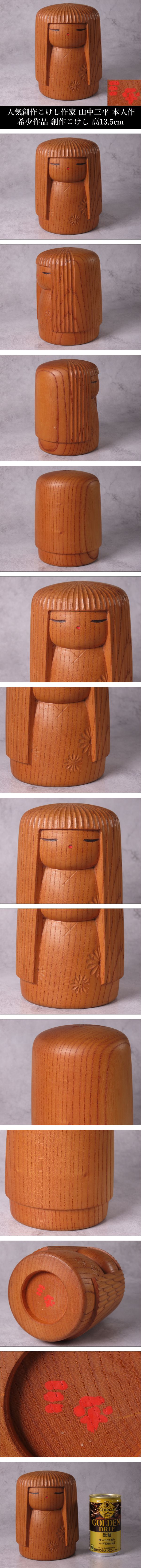 【ONE'S】人気創作こけし作家 山中三平 本人作 希少作品 創作こけし 高13.5cm コケシ 郷土玩具 日本人形 伝統工芸 | |||