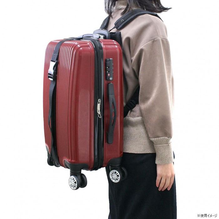 | キャリーケースを押して歩くのに不便な場所や悪路・階段の上り下り・自転車の方におすすめ。ベルトを回して留めるだけで、リュックのように背負えます。背負った後はベルトを付けたままキャリーを押すことも可能なので使いやすいです。 |