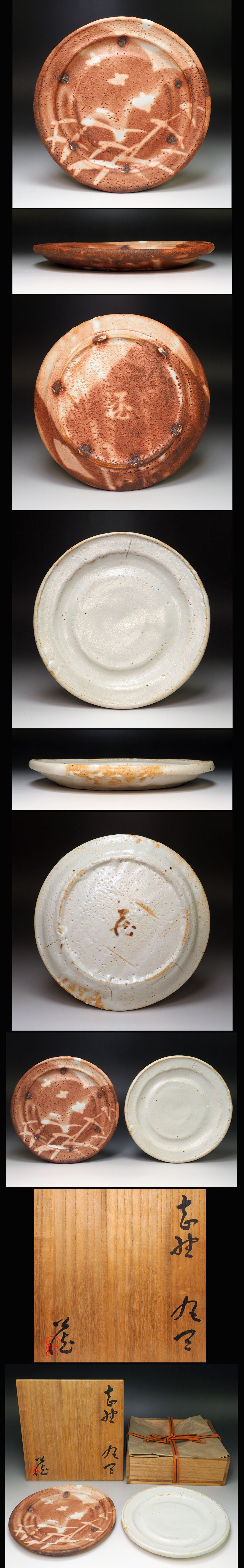 ![]() 人間国宝 鈴木蔵の2種皿「志野丸皿」2点セットです。 サイズ:約 径19.8cm×高2.2cm(2点同等サイズ) 共箱付き 作品状態:無傷で美品です。(目視確認です。) 詳細は写真で確認してください。 こちらの作品は真作保証の安心頂ける作品であることをお約束いたします。 不明な点は、入札前に質問等でご確認下さい。 鈴木 蔵(すずき おさむ) 昭和9年(1934)岐阜県土岐市に生まれる。 1953年に岐阜県立多治見工業高等学校窯業科を卒業。 釉薬の研究をしていた父通雄の助手として丸幸陶苑試験室に入社し、五代加藤幸兵衛のもとで作陶を学ぶ。 陶土や釉薬について学び基礎的な知識を身につけた後、荒川豊蔵や加藤土師萌などに師事。 1959年に初出品した現代日本陶芸展、日本伝統工芸展で入選。 1982年には日本陶磁協会金賞。 1987年には芸術選奨文部大臣賞を受賞。 1994年6月27日に重要無形文化財「志野」保持者(人間国宝)に認定された。 現在も志野独特の白色の釉薬の原料である長石に対しても研究を重ねており、一貫してガス窯による志野の焼成に挑み続けている。 朝日陶芸展審査員・日本伝統工芸展鑑査委員等を歴任。 日本工芸会理事。 | |||