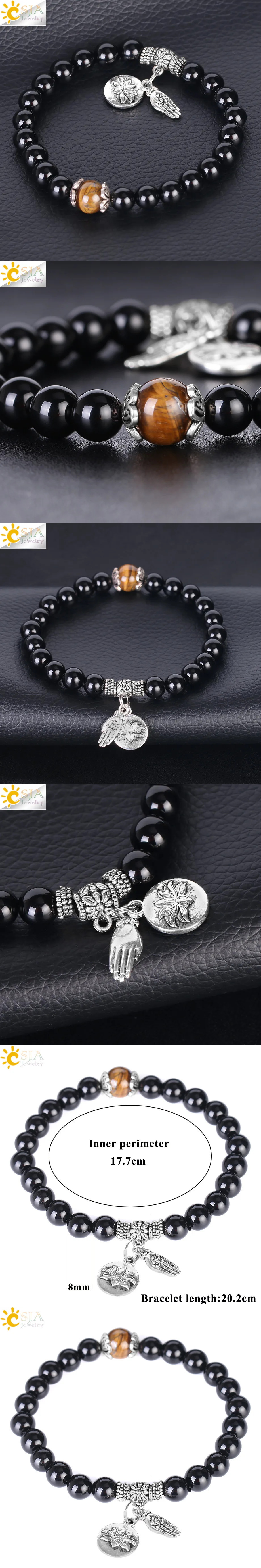 バングル ブレスレット 動物 アニマル 黒 ブラック ストーン タイガー ブッダ ビーズ メンズ 收藏