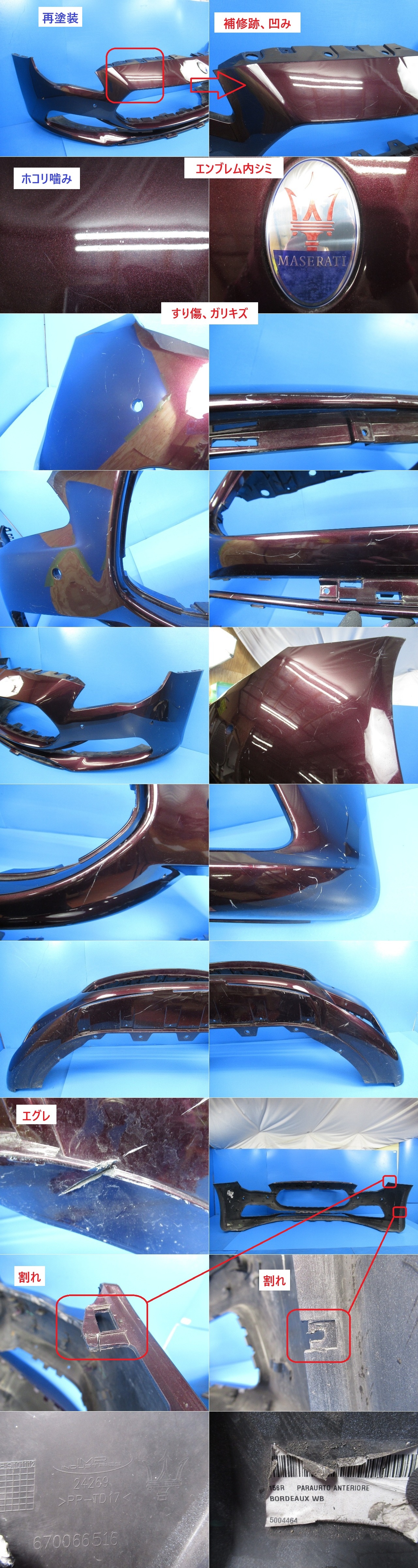 《即決あり》 マセラティ クアトロポルテ 純正 フロントバンパー ボルドーメタリック【 670066516 】(M009266) 收藏