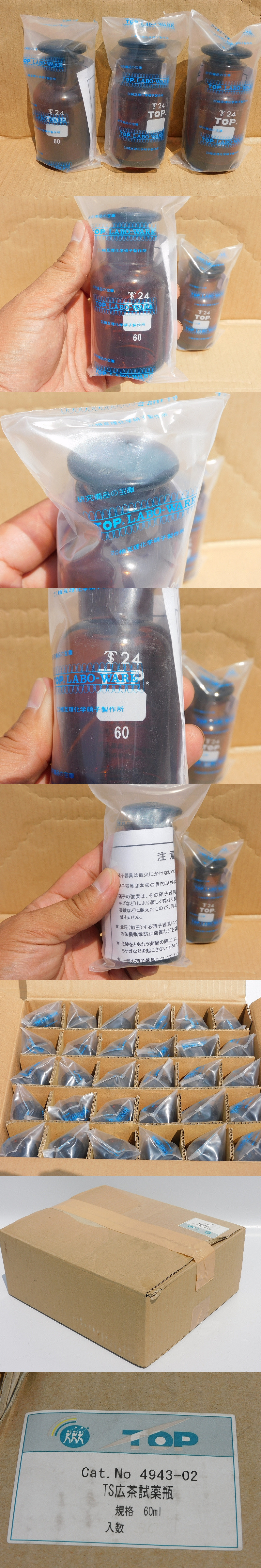 【E4219/新品30個入り/送料無料】相互理化学硝子 TOP 4943-02 TS広茶試験瓶 60ml 茶色 ガラスビン 研究備品 日本製 激安 お買い得 未使用 收藏