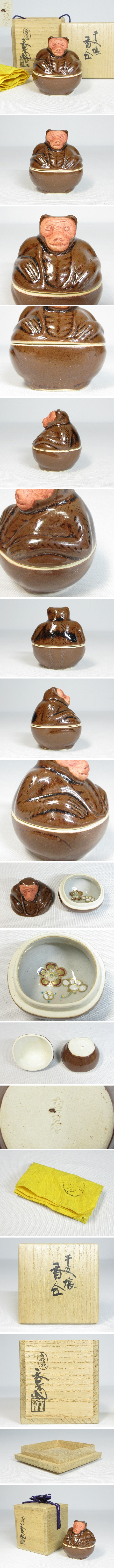 【B0748a】茶道具 真葛 宮川香斎 真葛香斎 干支 猿 香合 共箱 共布 即決 收藏