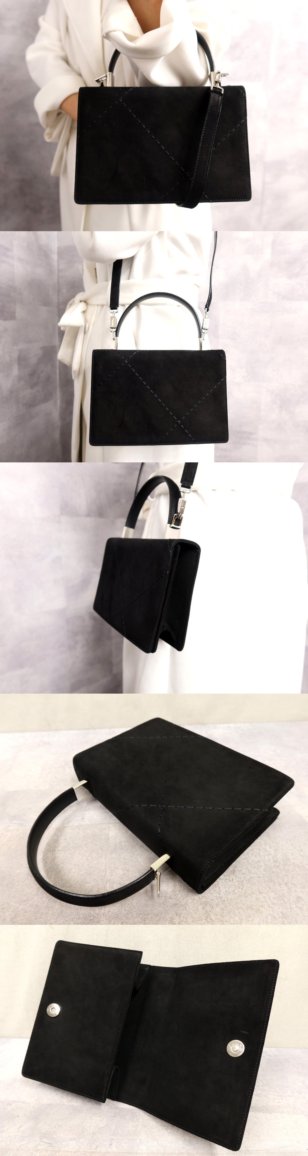 ●超美品●Salvatore Ferragamo フェラガモ●スエード カーフ レザー 本革●2way ハンド バッグ●黒●シルバー金具●収納 かばん●Js62514 收藏