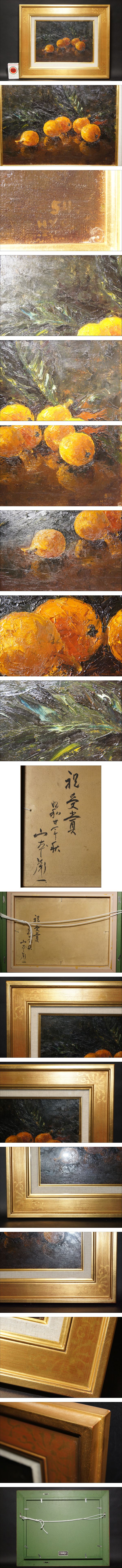 真贋保証■山本彪一■ 油彩 枇杷 1954年作『祝受賞 昭和30年 秋』4号 サイン有 額装 HYO 果実 果物 静物画 師:猪熊玄一郎 | |||||||||||