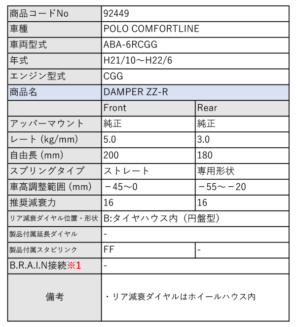 [BLITZ_ZZ-R]ABA-6RCGG ポロ_コンフォートライン(H21/10~H22/6)用ブリッツ車高調[No:92449] 收藏