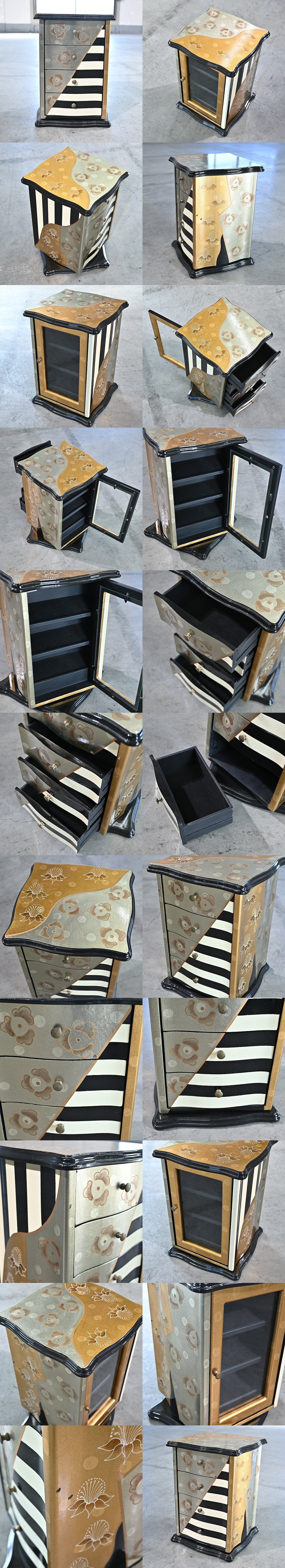 和風 卓上小物入れ 回転 引き出し 収納 漆風 花模様 金 両面 玄関 リビング 寝室 化粧 アクセサリー ジュエリー_岩谷堂箪笥 民芸 李朝 收藏