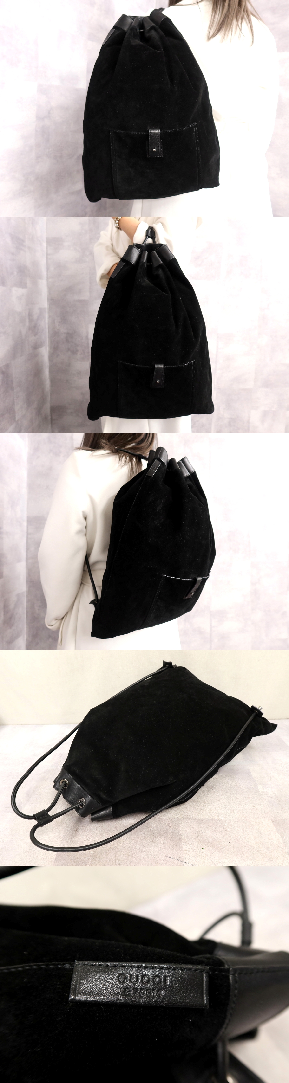 ●超美品●GUCCI グッチ●スエード カーフ レザー 本革●巾着 ショルダー バッグ●黒●シルバー金具●イタリア製●A4 収納 かばん●Js64377 收藏