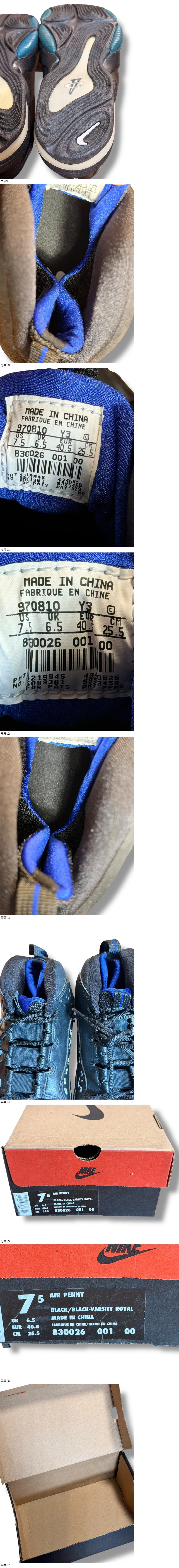 【送料無料】Y2K/90s NIKE AIR PENNY ナイキ エアペニー バスケットボールシューズ ブラック/ロイヤル 約25.5cm(US7.5/UK6.5/EUR40.5) 收藏