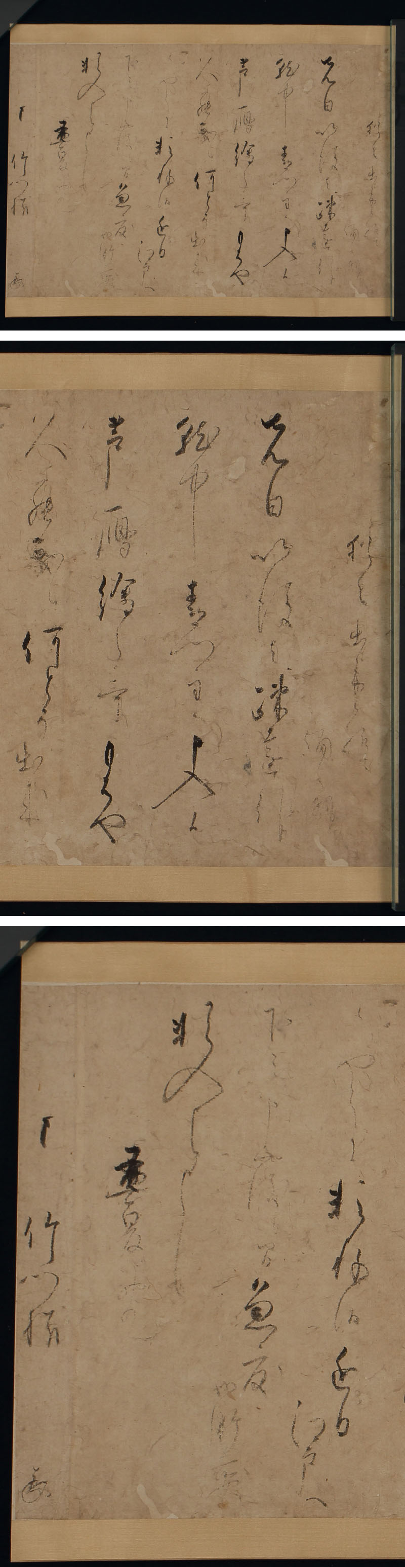 梶井宮盛胤法親王の消息です。 曼殊院宮良尚法親王に宛てた書で、青蓮院宮尊証法親王に頼んだ「芦雁絵之歌」が暫く仕上がってこないので取次を頼む旨を認めております。 梶井宮と青蓮院宮は同年生まれの異母兄弟に当たりますが、梶井宮が弟宮となります。良尚法親王は青蓮院宮の師にあたり、催促にはてきめんであったのでしょう。 画事・和歌を巧みにした門跡たちの、交際の機微がつづられた一品です。 ◆梶井宮盛胤法親王 江戸初期の親王。梶井門跡。後水尾天皇皇子。天台座主。名常尹。延宝8(1680)年没、30歳。 ◆曼殊院宮良尚法親王 江戸初期の親王。曼殊院門跡二十九世。八条宮智仁親王の第二王子。のち後水尾天皇の猶子となる。俗名は勝行、幼称は二宮、号は天松院。天台座主・二品に叙せられ、のち潅頂を受け、大阿闍梨となる。曼殊院の移転・整備に尽力し、同院の中興開山とされる。水墨画・書道・詩文・茶花を能くした。元禄6(1693)年寂、72歳。 〔本文〕 猶々、出来候様ニ備へまいらせ候 先日以後者疎遠にて 就中青門主(青蓮院宮尊証法親王)へ申入候 芦雁絵之歌、もはや 久罷義候、何とそ出来 候やうに頼存候、近日江戸へ 下シ申度候間、急度御所取次 頼入申候、かしく 孟夏初九 竹門様 (花押) 寸法:縦39cm、横51.5cm(最大幅。若干の誤差はご了承下さい) 状態:経年のイタミがございます。 | |