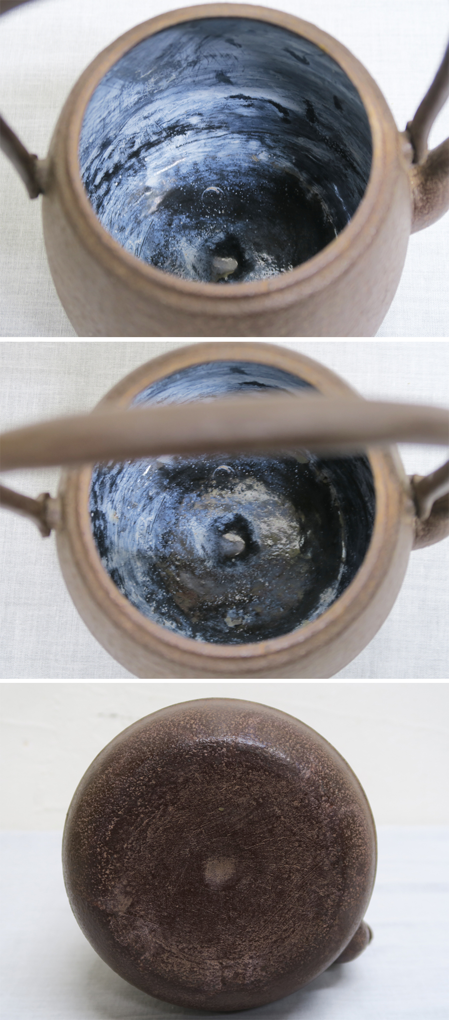 鉄瓶の出品です。 画像で確認できる通り、多少の使用感はありますが、中古品として良いコンディションだと思います。 共箱は欠損しています。 24時間以上水を入れて、水漏れがしないのも確認しています。 ---------------------------------- 高さ:23.5cm 幅:17.0×14cm 口径:9.2cm 重量:1522g (多少の誤差はご容赦ください) ---------------------------------- 画像をよくご確認してご入札ください。 ご不明な点がありましたら、質問欄よりお気軽にご連絡ください。 他にも出品していますので、よろしければこちらからご覧ください。 |