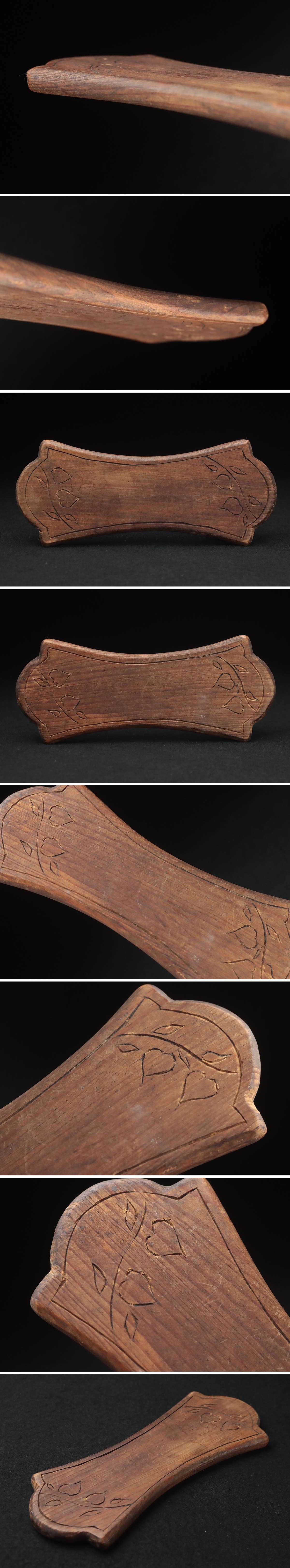 JQ584 朝鮮古美術 李朝 木製 糸巻・李朝糸巻 縦17.5cm・草花彫図 シルベ 李朝古民芸 收藏