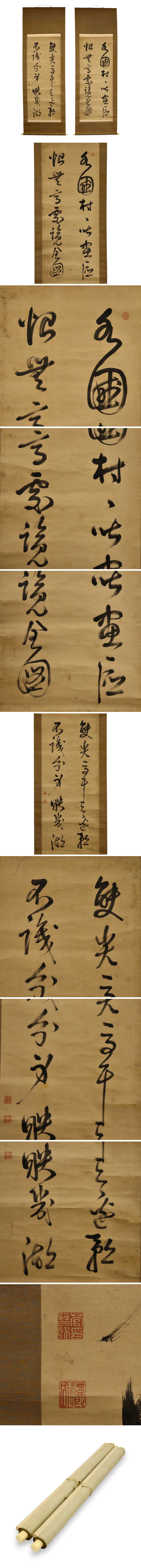 真作保証 江戸時代後期の儒学者 菅茶山 二行書 双幅 紙本 備後 掛軸 書画 骨董品 美術品 2857kezN 收藏
