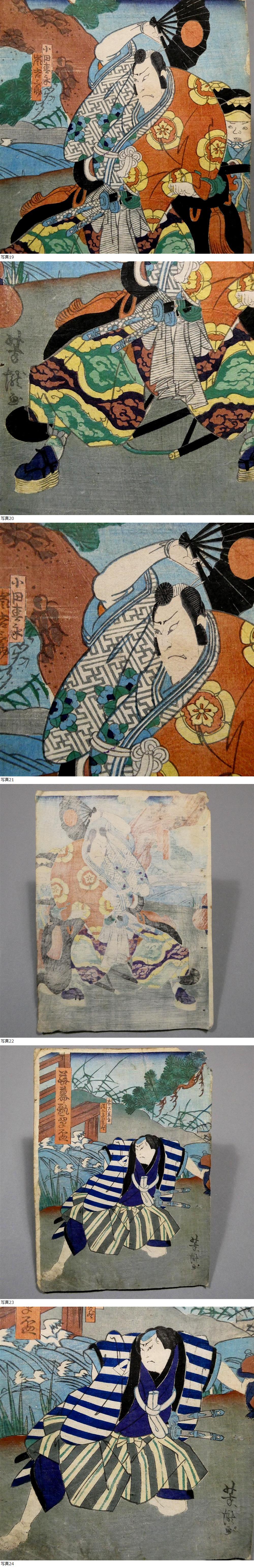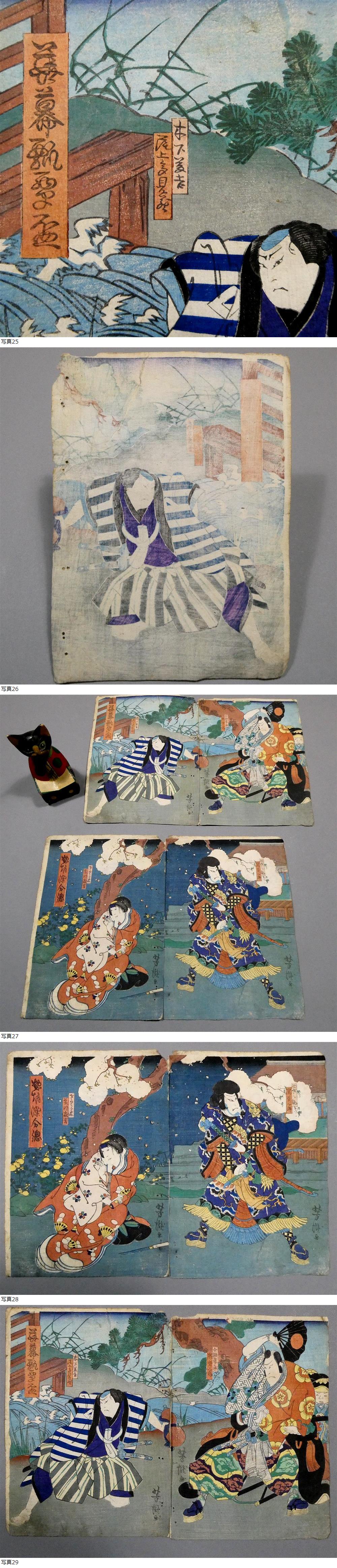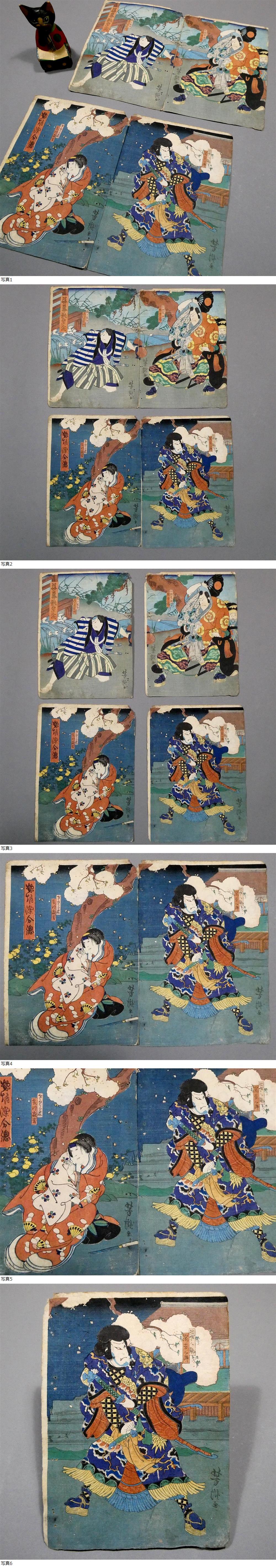 芳瀧の木版浮世絵、上方絵の4枚一括です。